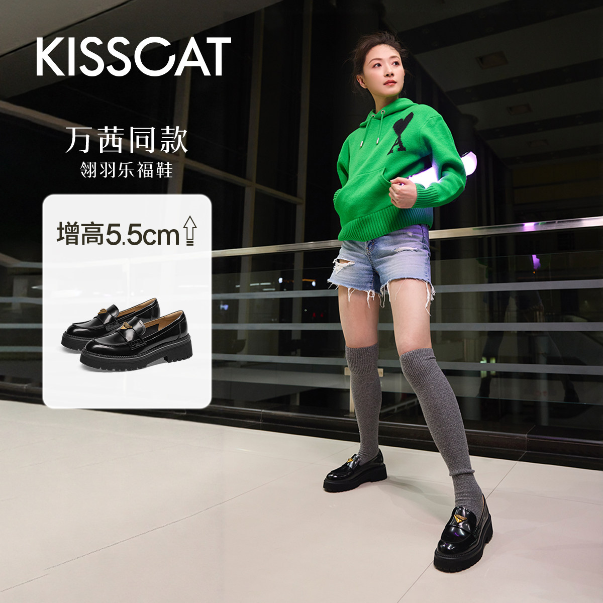 [万茜/毛晓彤同款]接吻猫翎羽乐福鞋舒适黑色增高厚底小皮鞋女