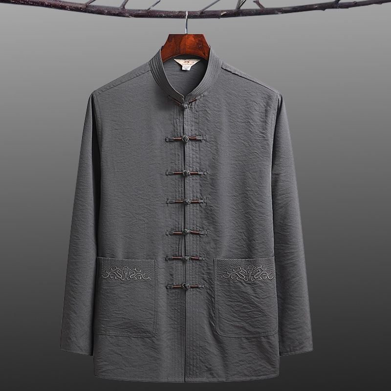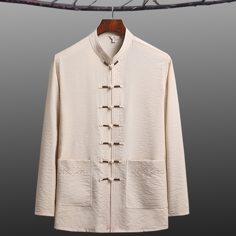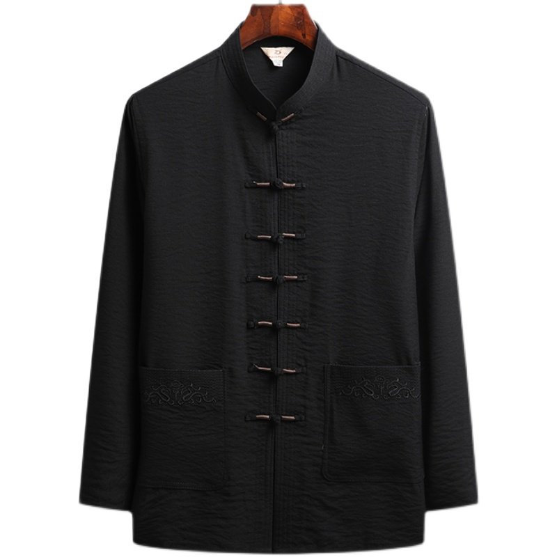 中老年人唐装男长袖棉麻上衣爸爸春夏装中式太极服汉服秋季爷爷装