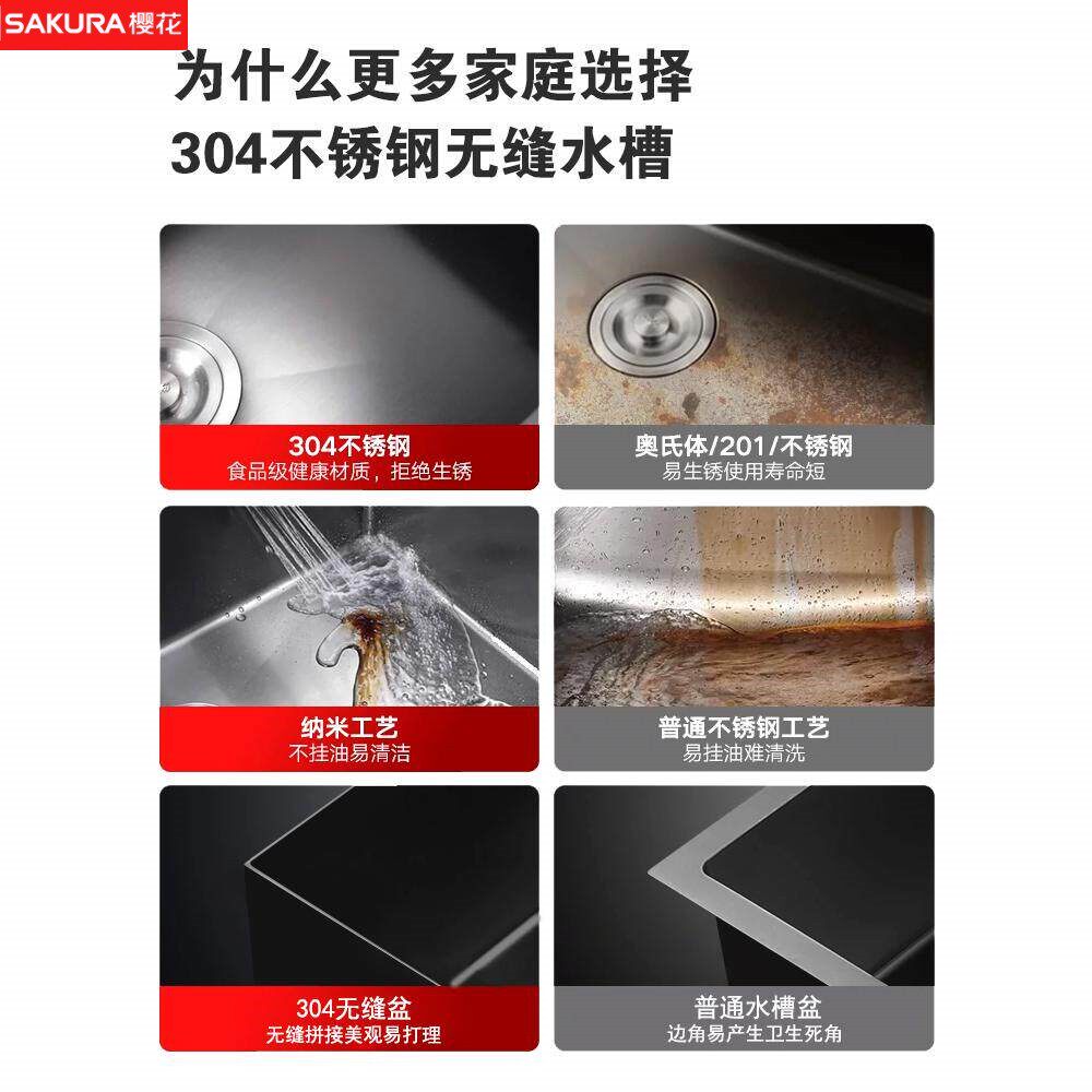 樱花304不锈钢无缝一体盆厨房西厨餐厅水槽无缝盆家用厨房洗碗洗