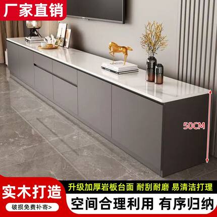 岩板电视柜卧室客厅实木现代简约电视柜高款落地柜轻奢收纳储物柜