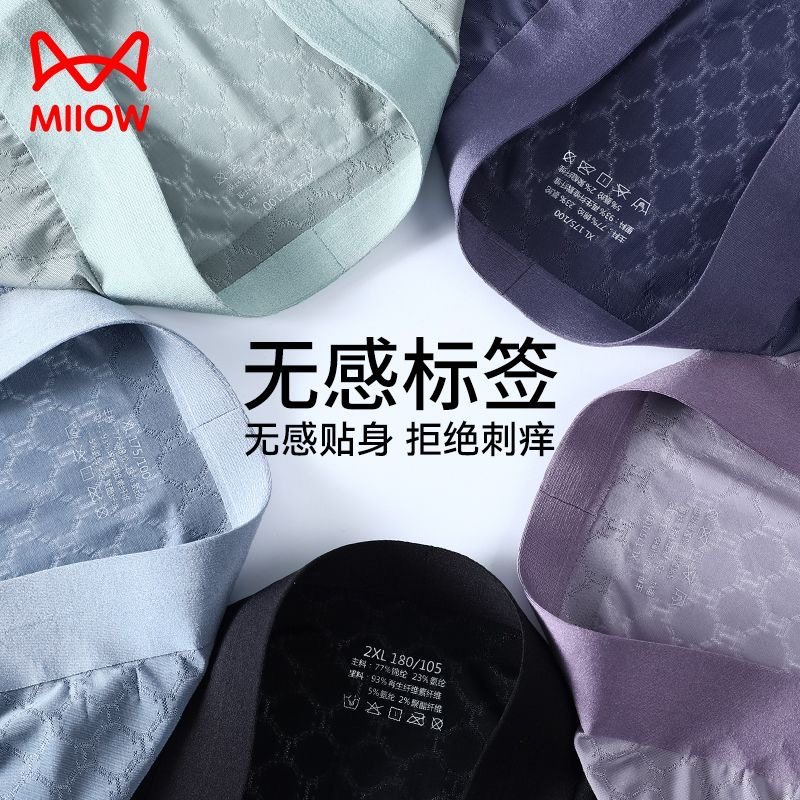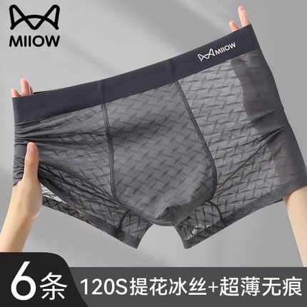 猫人黑色冰丝无痕男士内裤男款夏季平角短裤头纯凉感运动四角裤衩