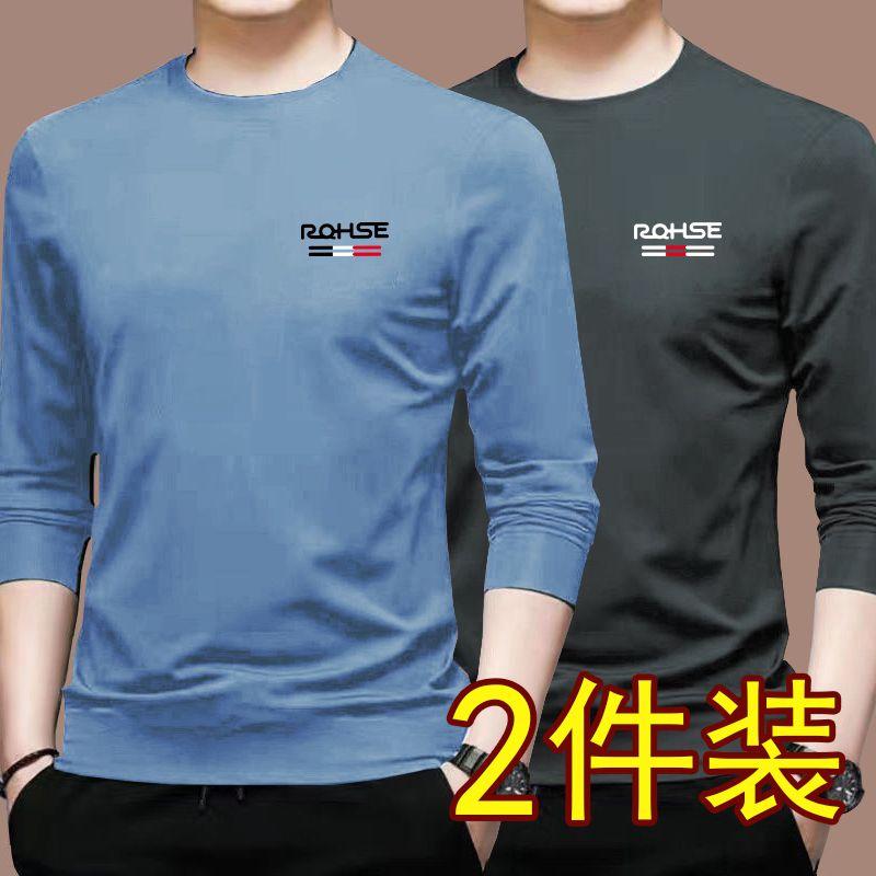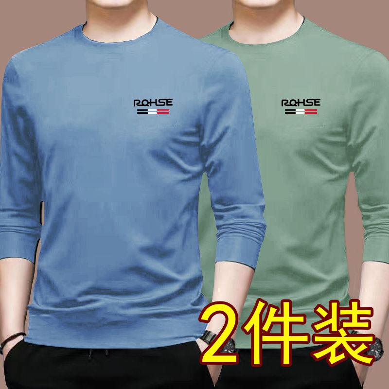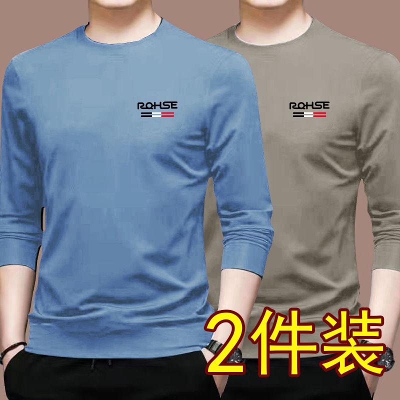秋季男士长袖t恤新款春秋上衣服宽松大码打底衫男装潮流卫衣1/2件
