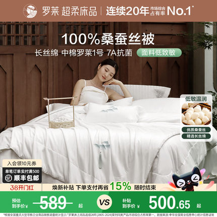 罗莱家纺全棉A类桑蚕丝二合一被