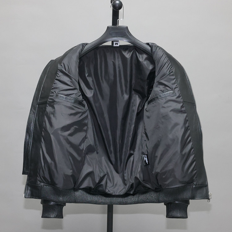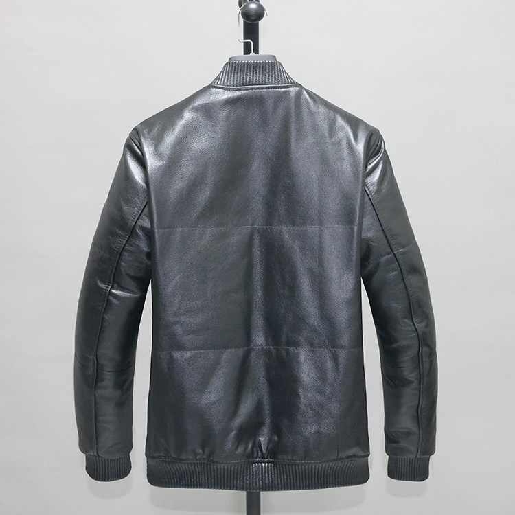 男女真皮羽绒棒球防寒服头层牛皮皮衣青年休闲修身短款夹克外套谈