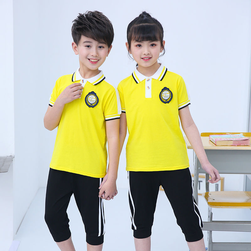 小学生校服黄色儿童班服夏季幼儿园园服红色夏装短袖七分裤子套装