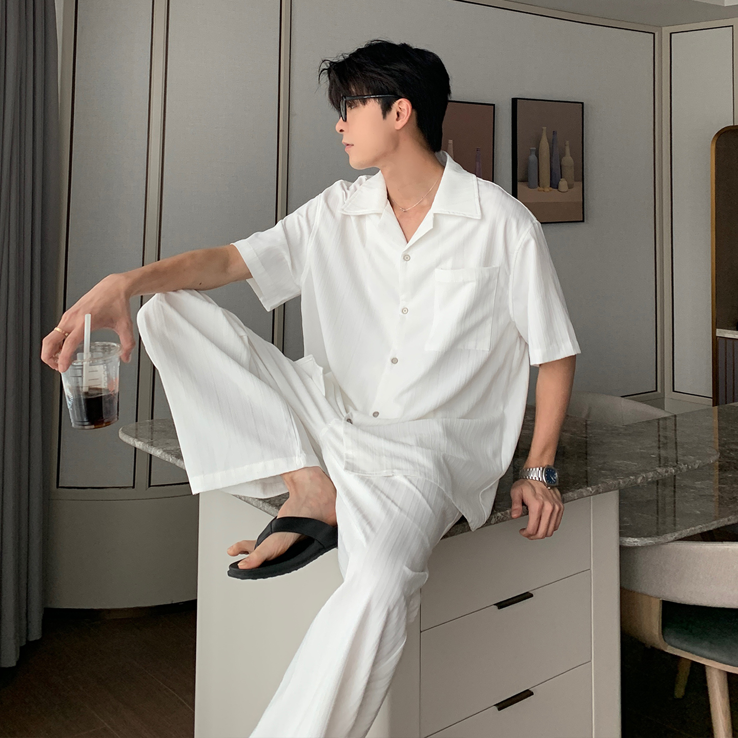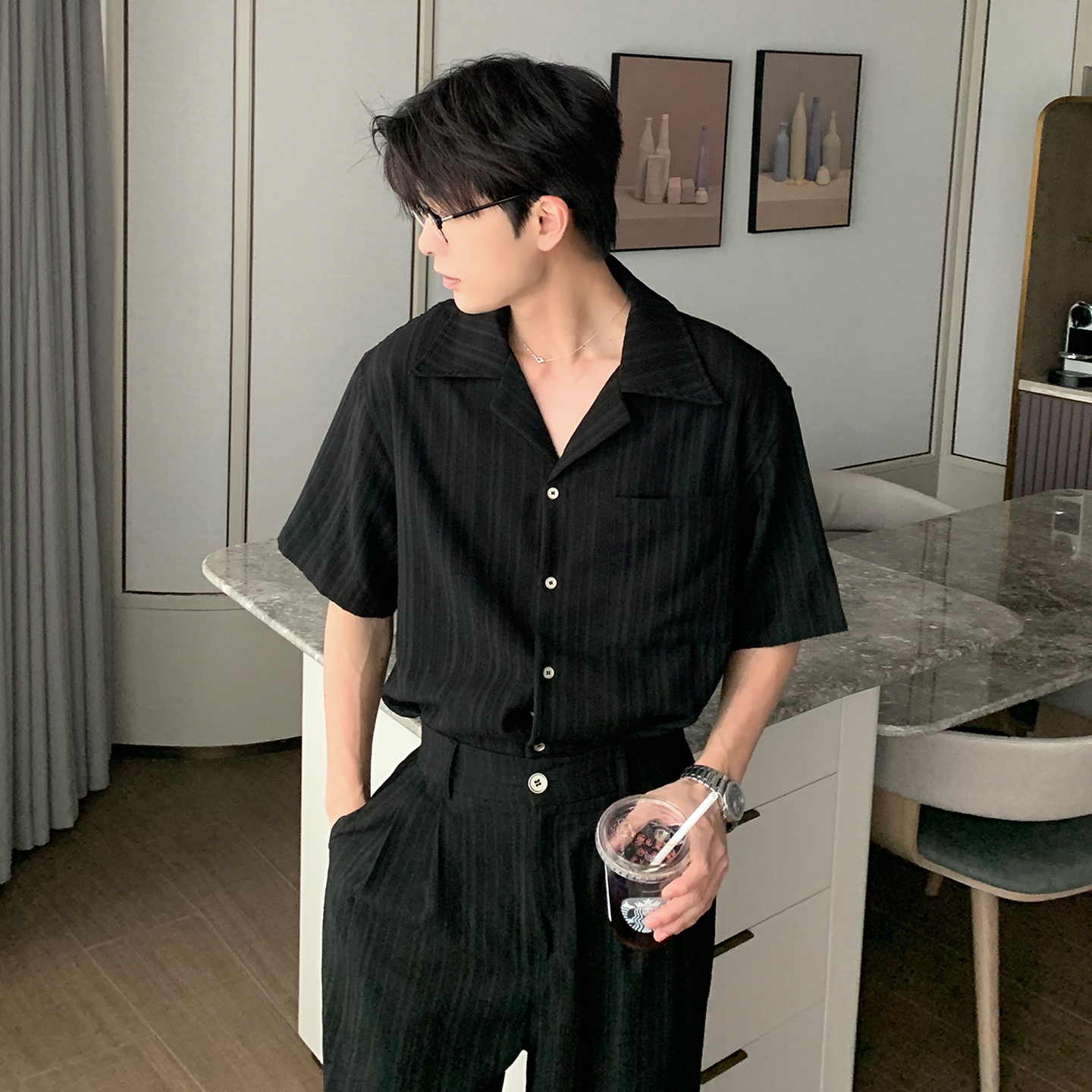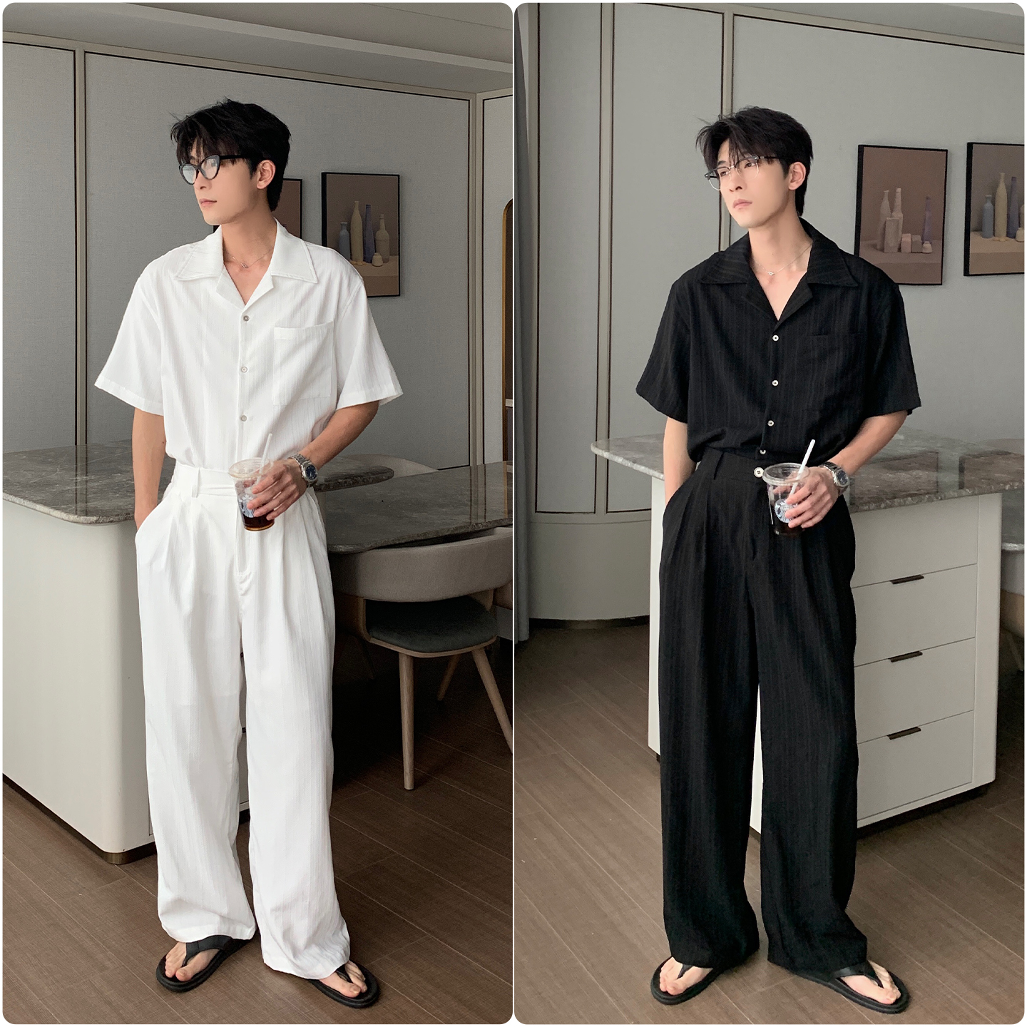 Hualun夏季老钱风一整套男模高级感穿搭套装男款衬衫一套痞帅搭配