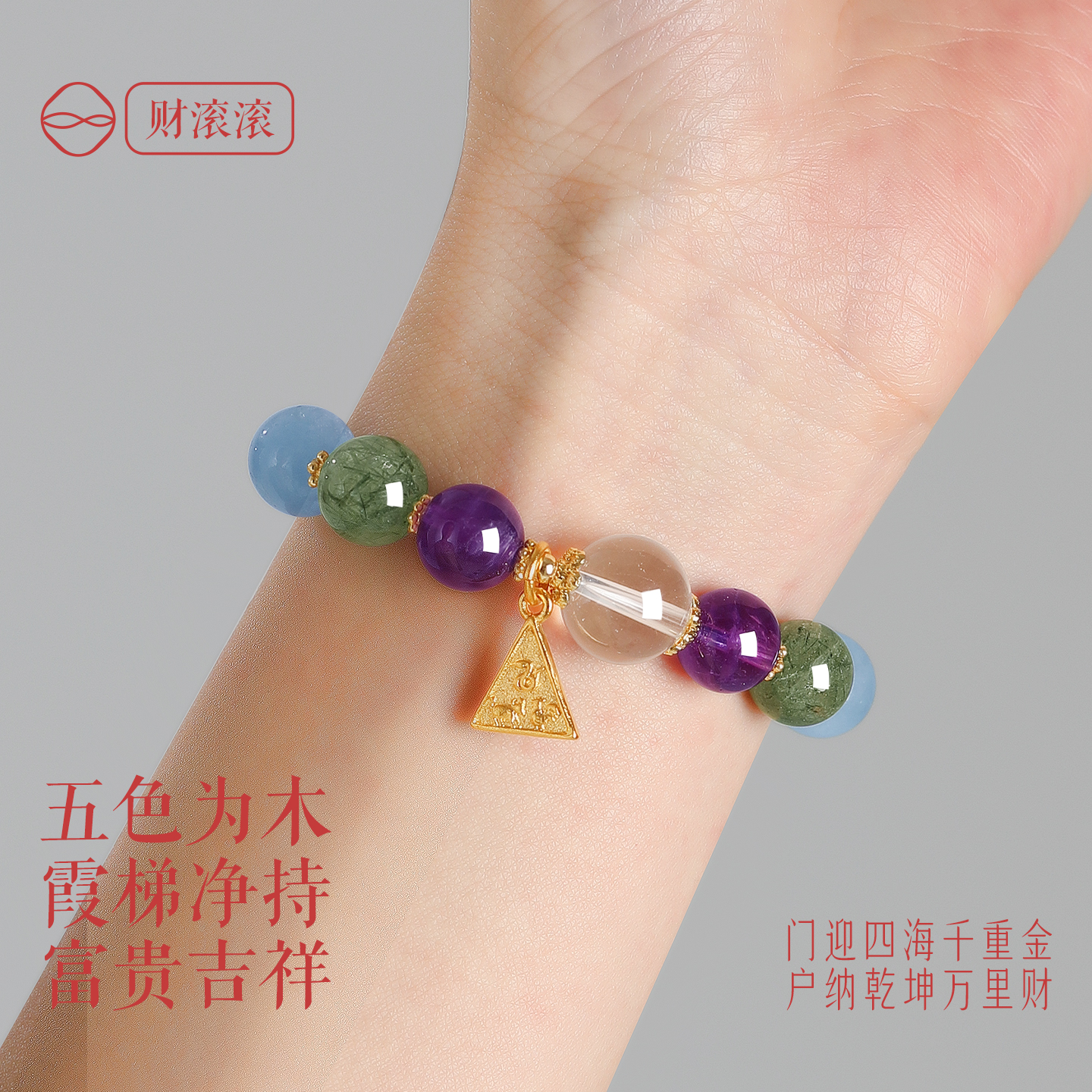 普陀山三合六合生肖手串女天然水晶朱砂紫水晶本命年多宝手链礼物