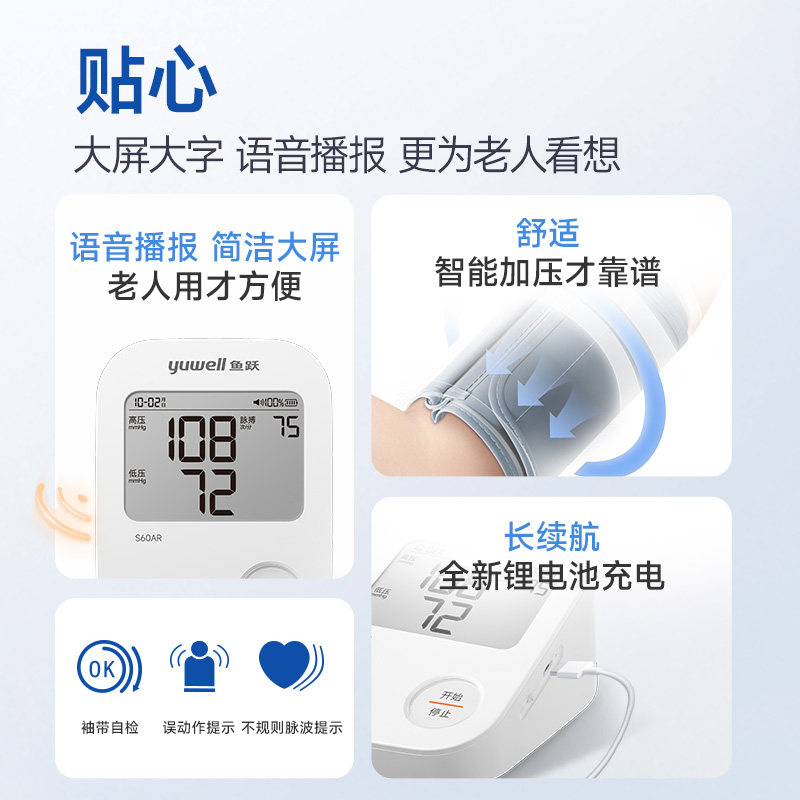 鱼跃电子血压计医院专用仪器血压测量仪家用高精准官方旗舰店正品