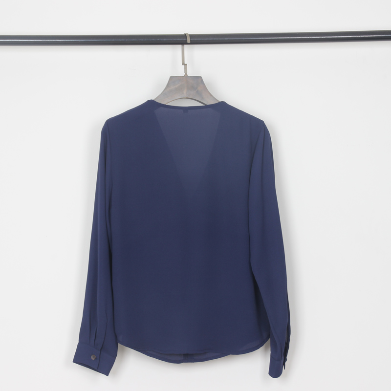 翻边V领长袖雪纺衫衬衫女 2025夏装新款凉快防晒宽松显瘦洋气小衫