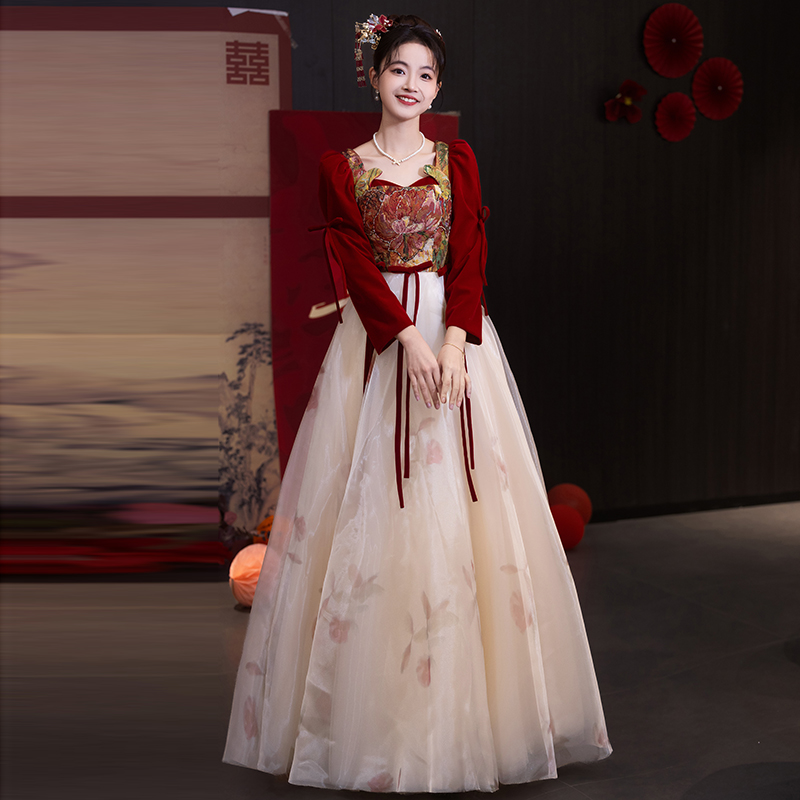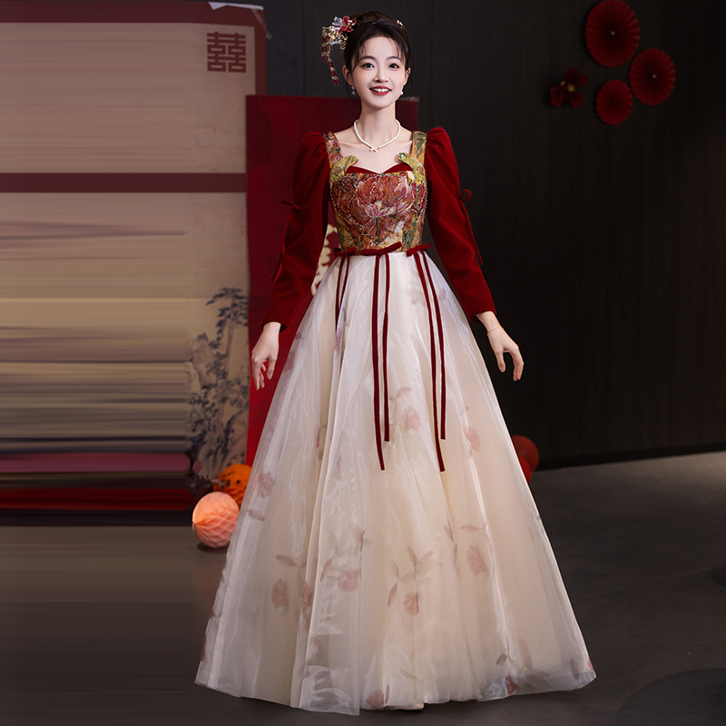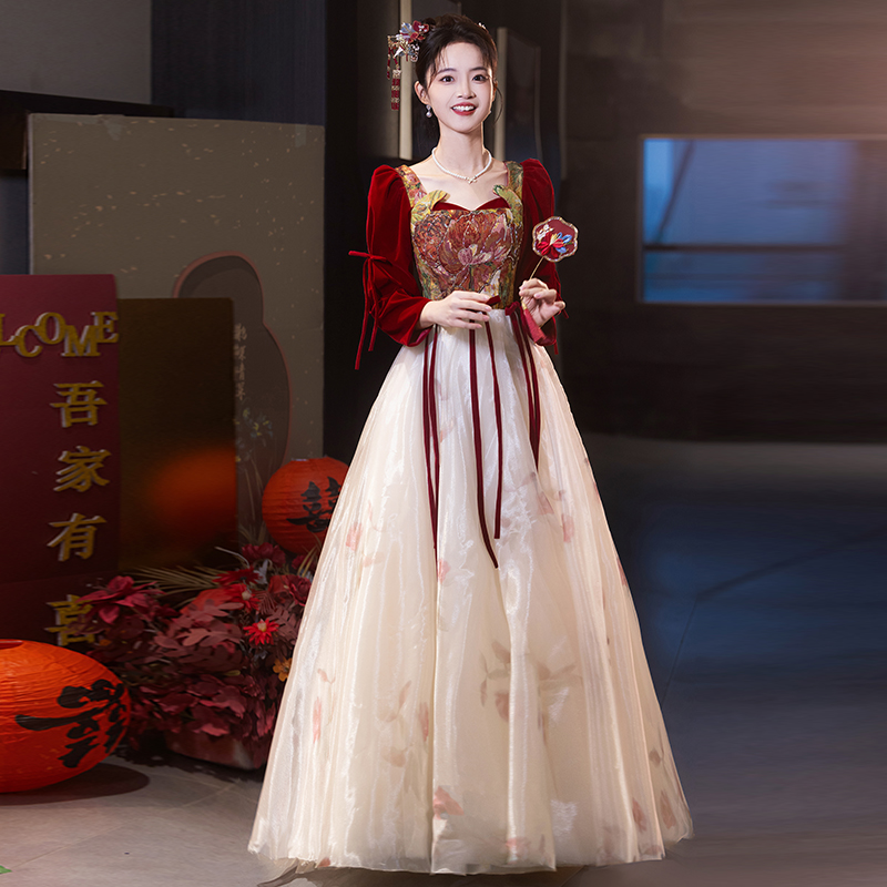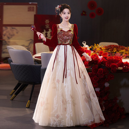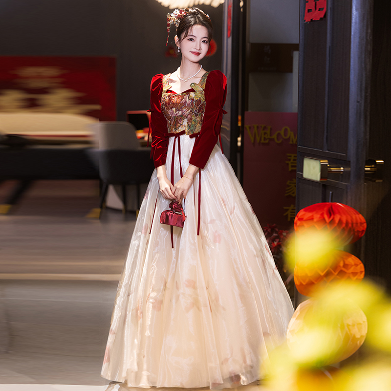 大码敬酒服新娘2025新款轻奢小众订婚晚礼服裙长袖结婚高级感秋冬