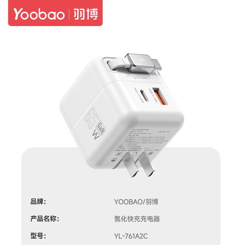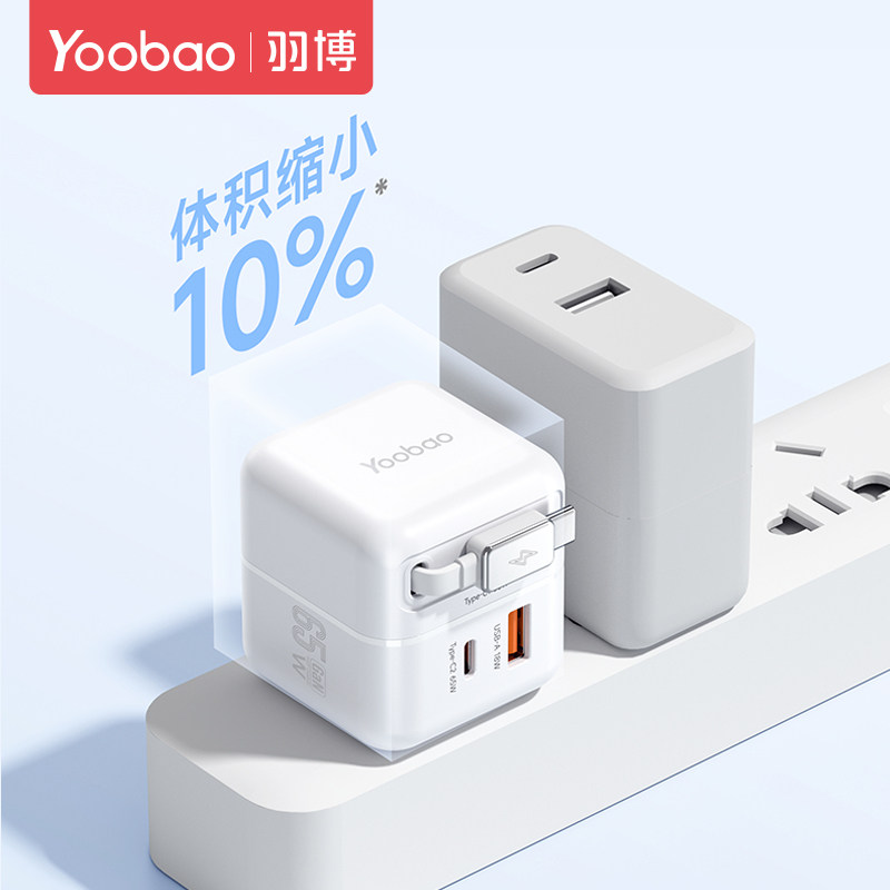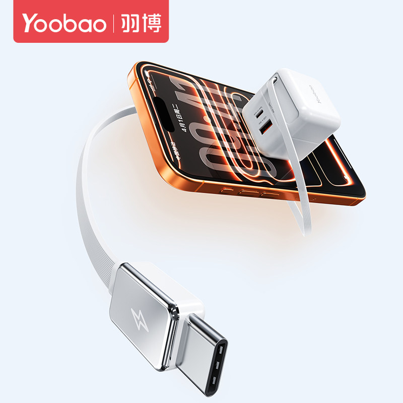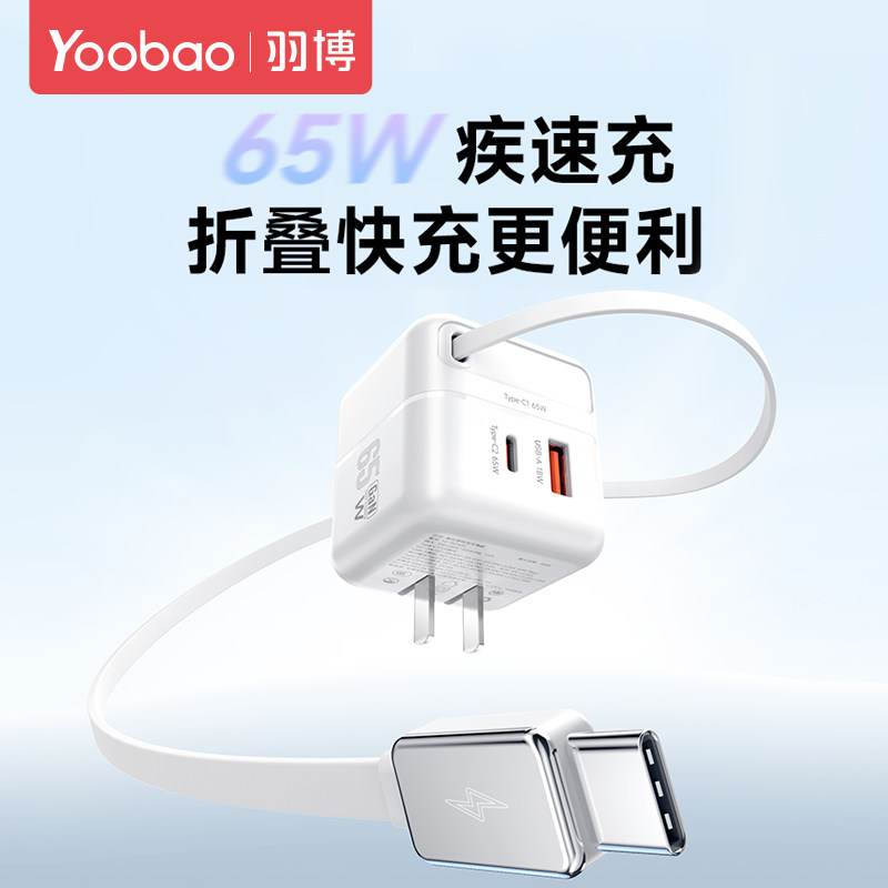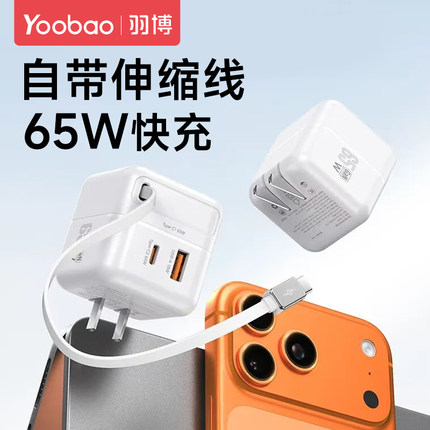羽博氮化镓充电器头65W超级快充充电头自带线适用于苹果40W iPhone17手机快充华为 小米通用usb充电插头多口
