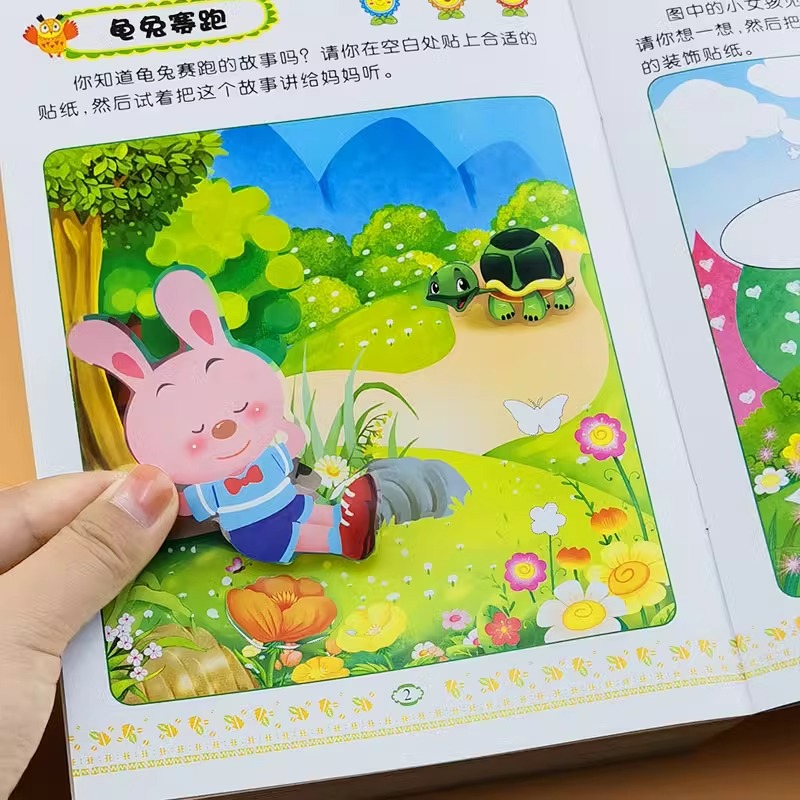 全脑开发贴贴画专注力训练儿童贴纸书益智玩具2-3-5-6岁4男女孩贴贴纸幼儿园宝宝换装/汽车/恐龙/蒙氏数学/童话故事贴画书早教启蒙