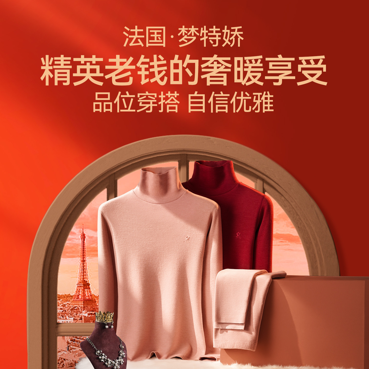 梦特娇羊绒蚕丝德绒半高领保暖内衣女加厚加绒发热秋衣秋裤套装冬