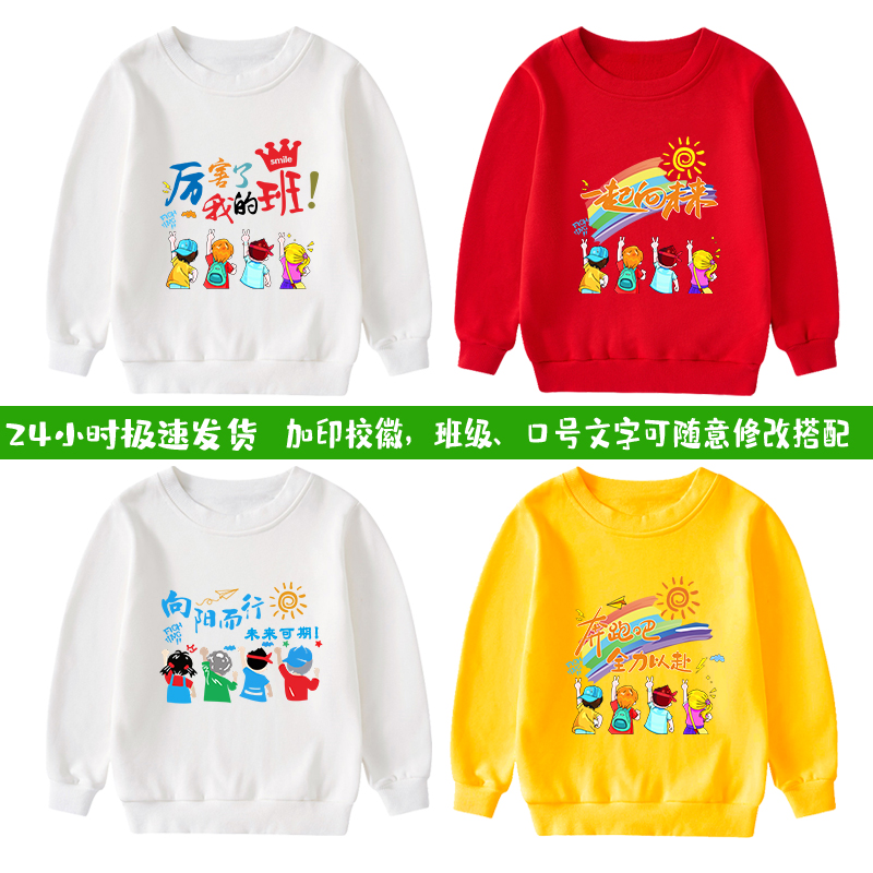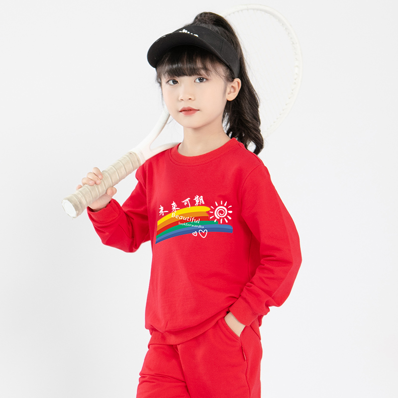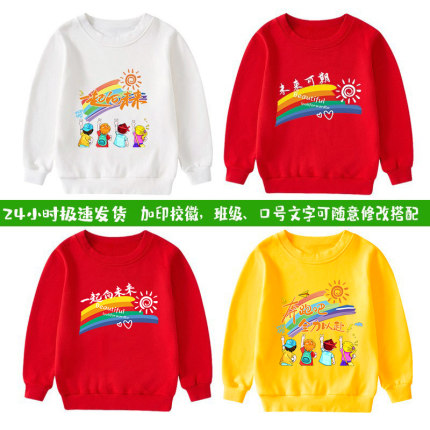 一起向未来演出服儿童红色卫衣 小学生运动会幼儿园亲子班服定制