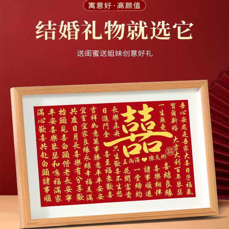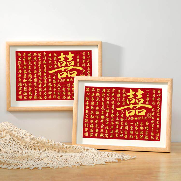 实木中空喜字相框摆台闺蜜结婚礼物送新人新娘diy手写A3囍字挂墙