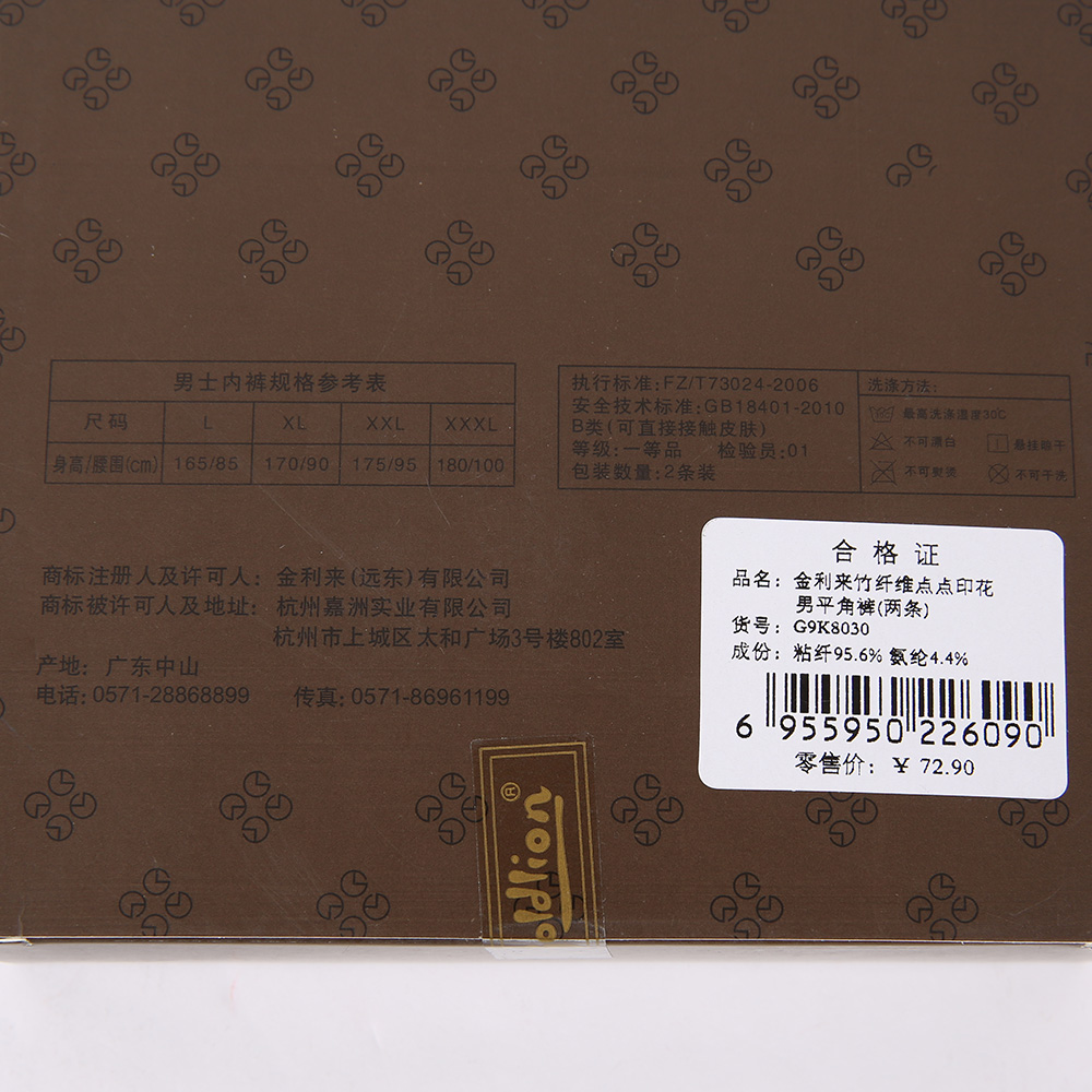 2条装金利来内裤男平角裤中腰薄款竹浆纤维印花男四角短裤G9K8030