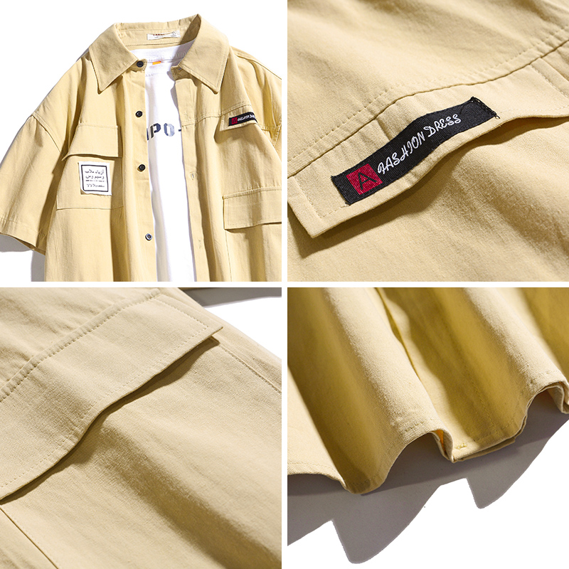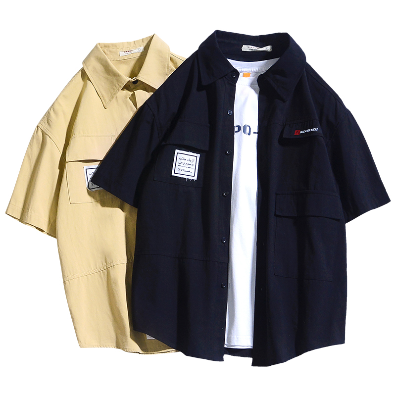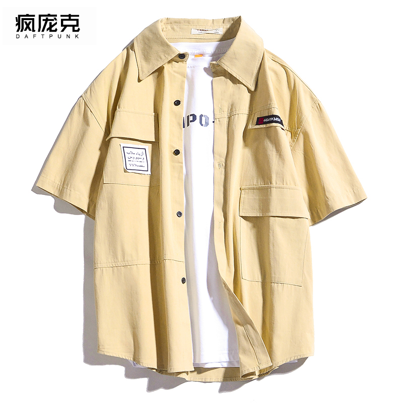 机能风衬衫短袖男士宽松大码潮流港风复古痞帅衬衣百搭外套情侣装