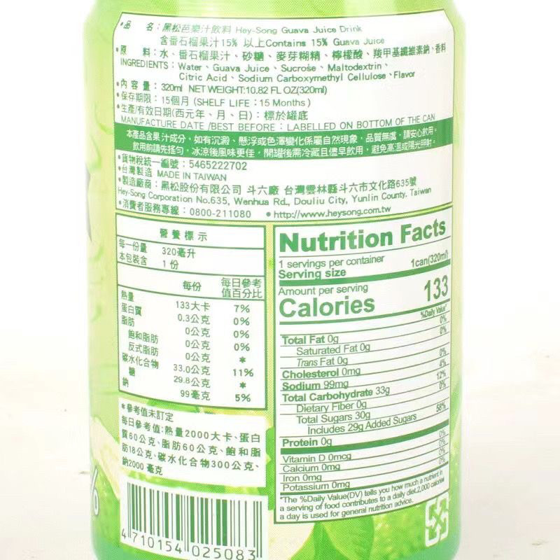 整箱24罐中国台湾进口天然黑松芭乐汁红芭乐番石榴饮料果味果汁