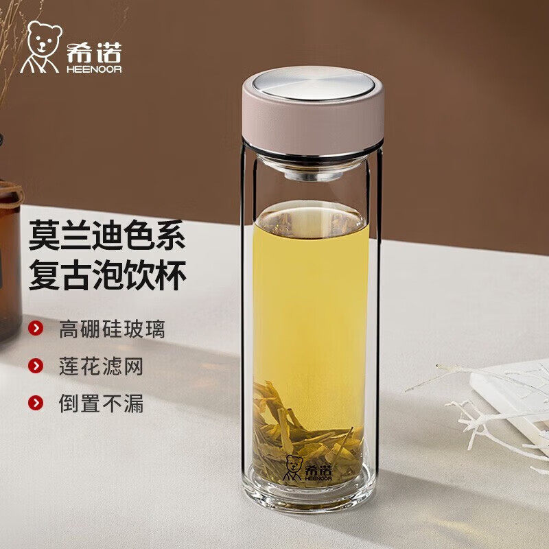 希诺双层玻璃杯隔热防烫茶杯子车载商务水杯XN-6617 410ML