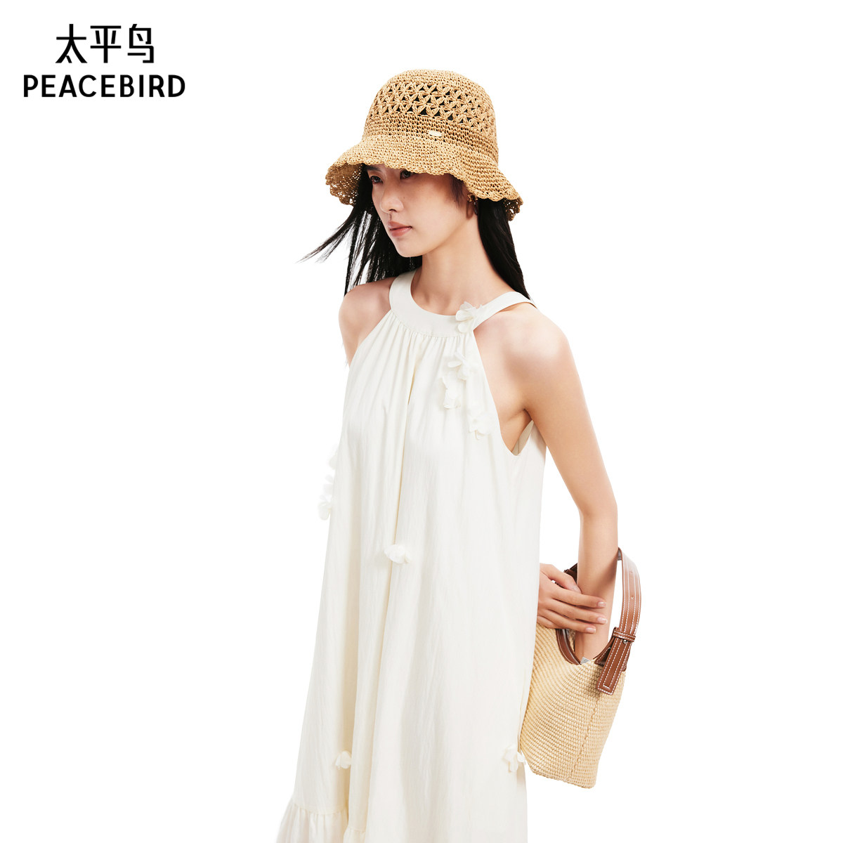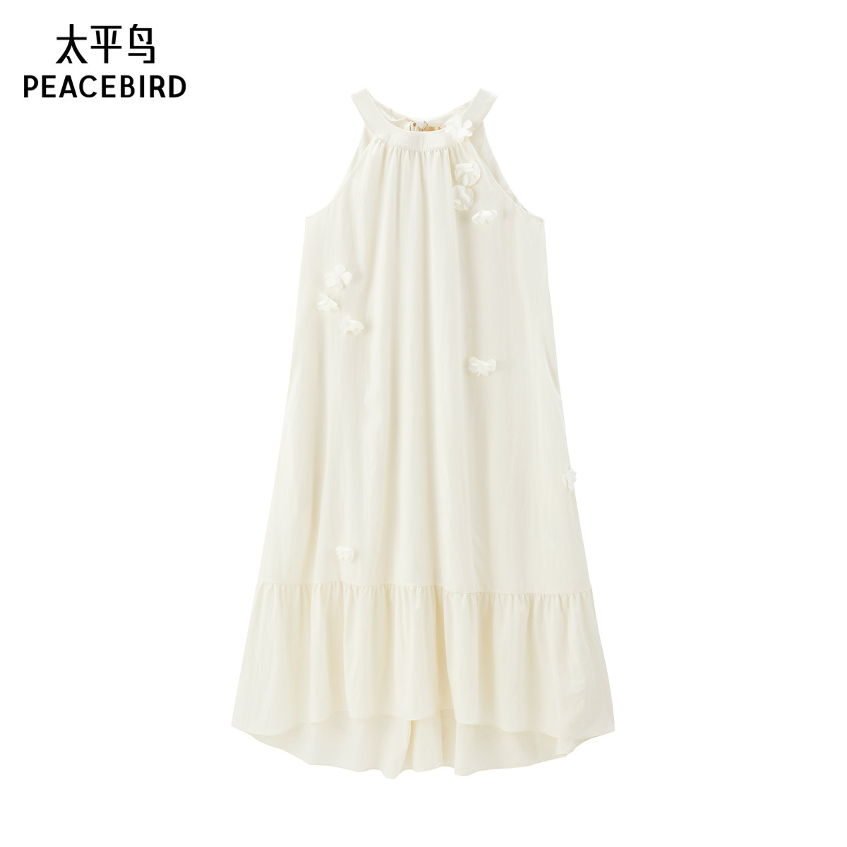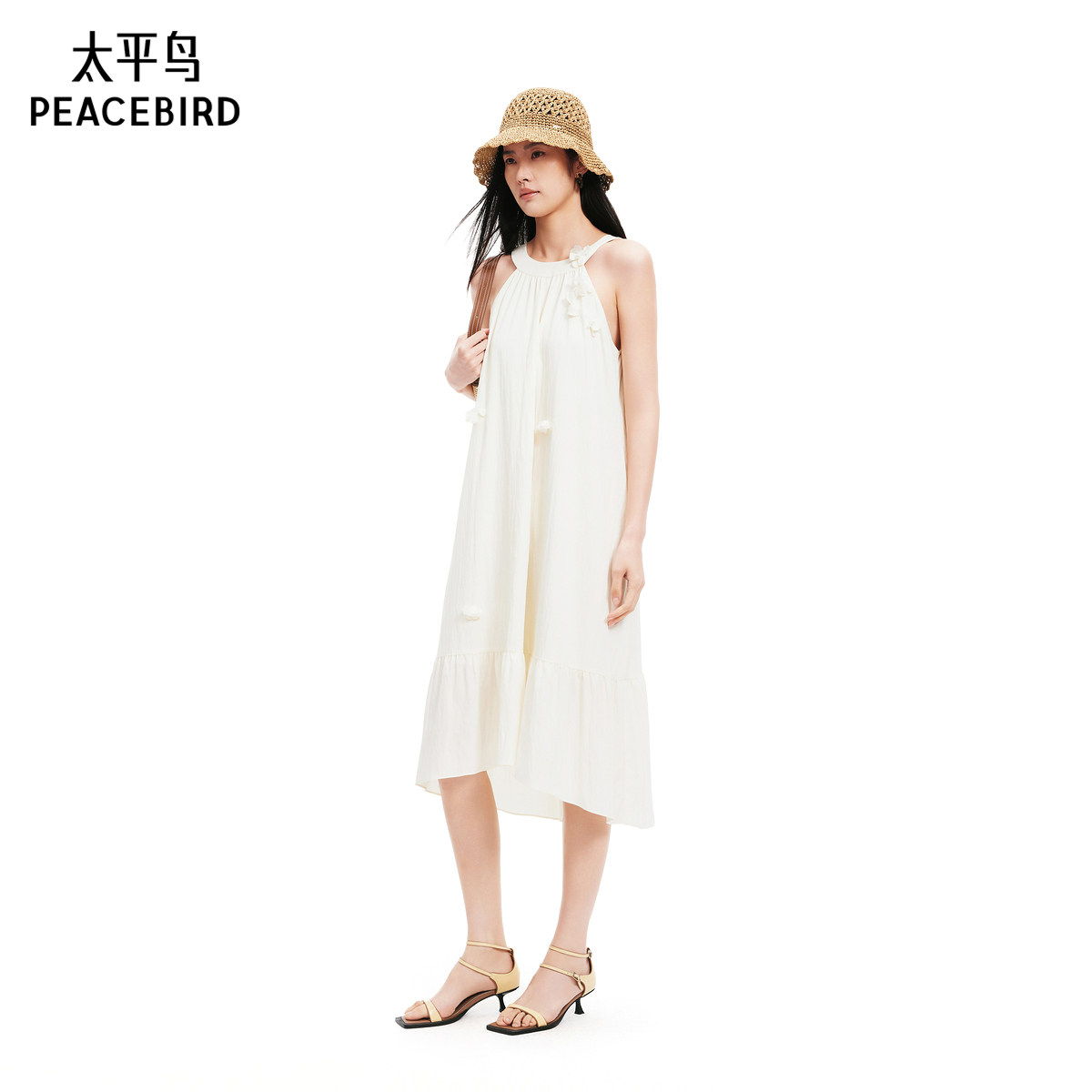 太平鸟女装2025年夏季新款挂脖白色长裙连衣裙品质时尚A1FAF2728