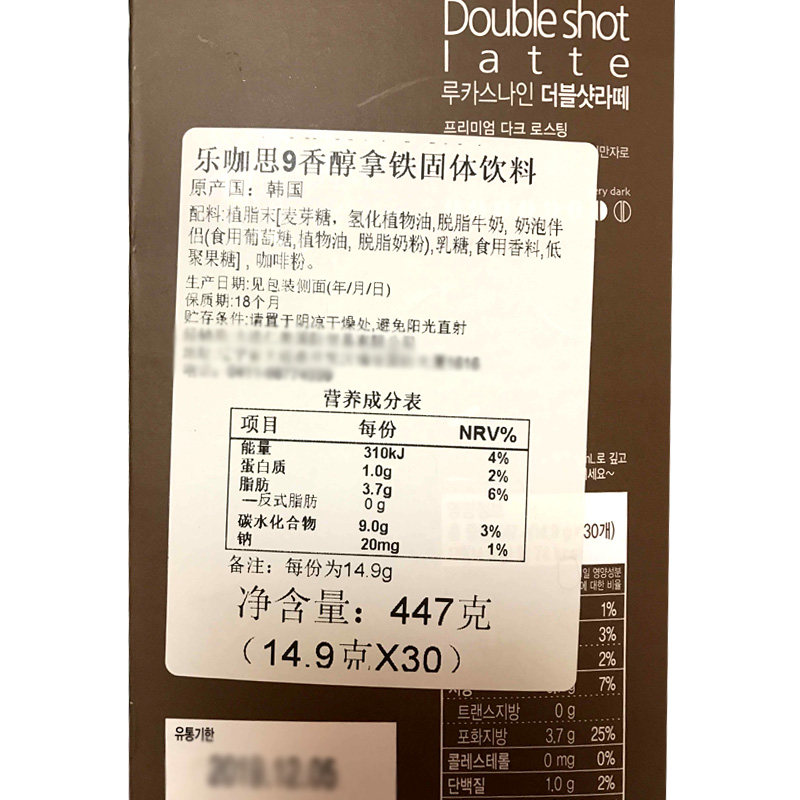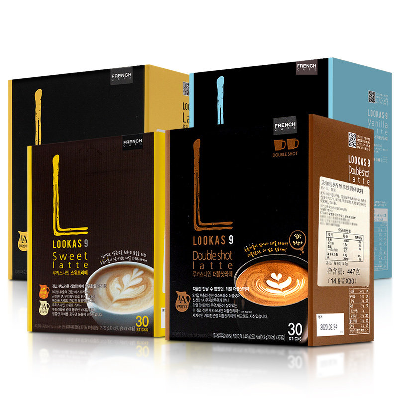 韩国进口FRENCH南阳咖啡lookas9双倍拿铁香草脱脂牛奶速溶咖啡粉