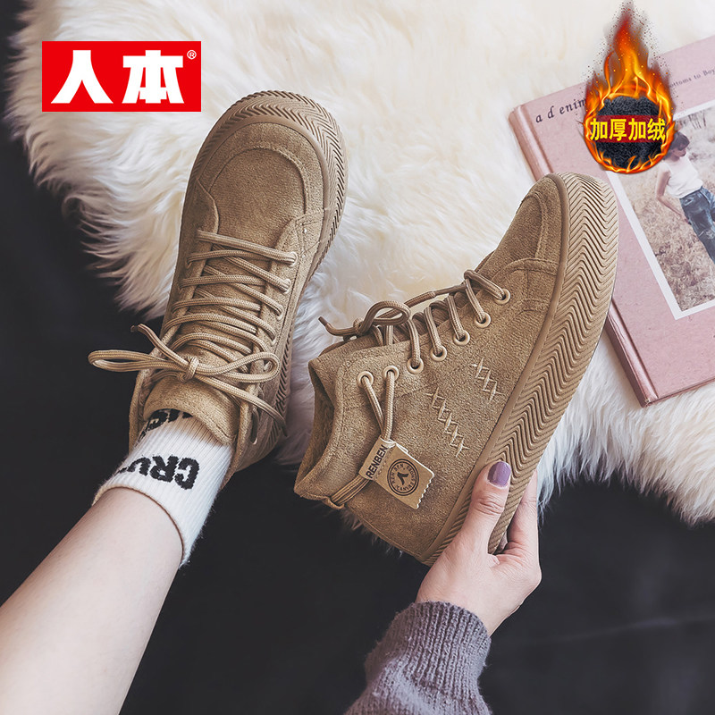 人本官方旗舰店正品高帮鞋女加绒2025新款女鞋厚底冬季保暖二棉鞋