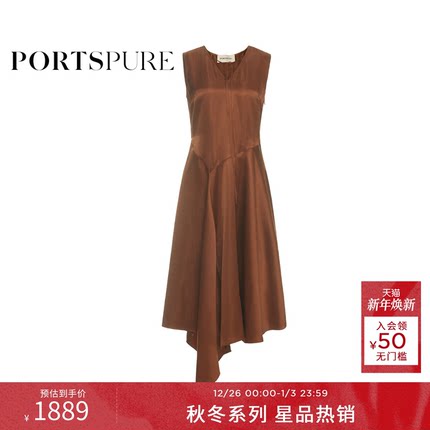 商场同款 宝姿PORTSPURE女装2025秋冬新品经典松弛醋酸无袖连衣裙