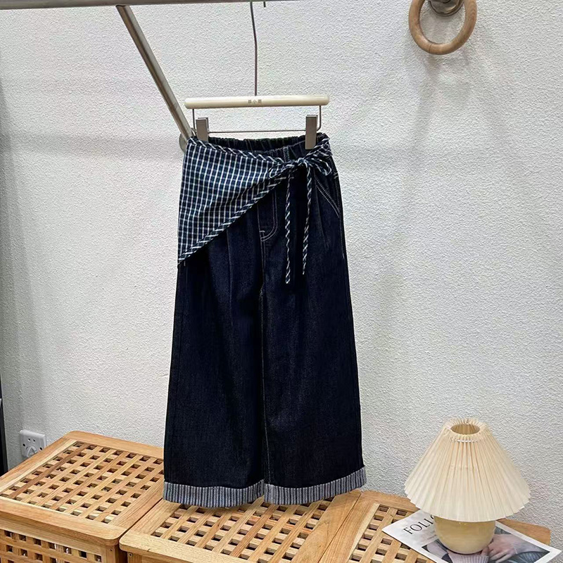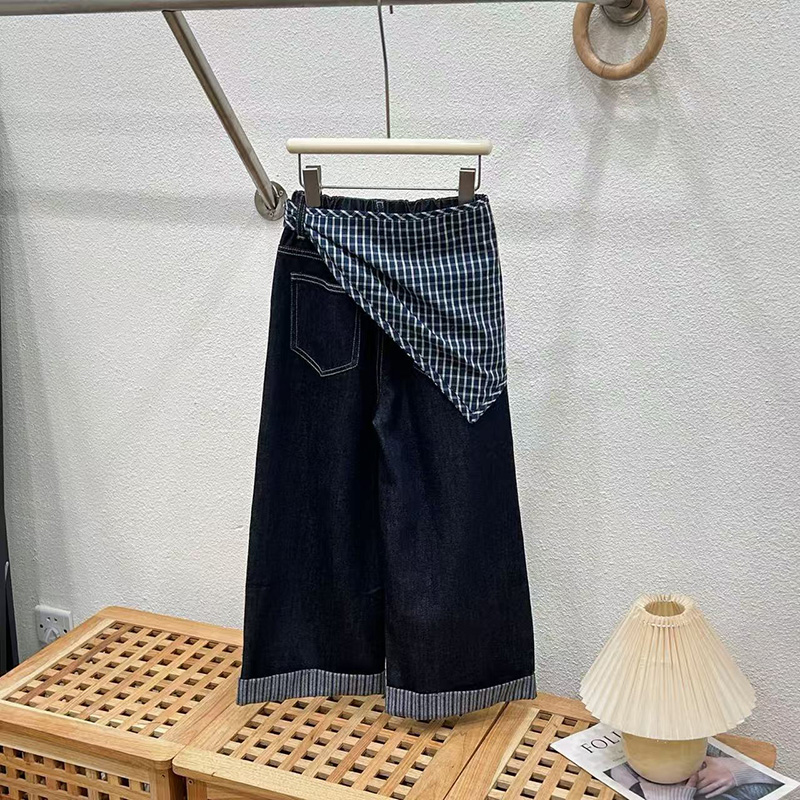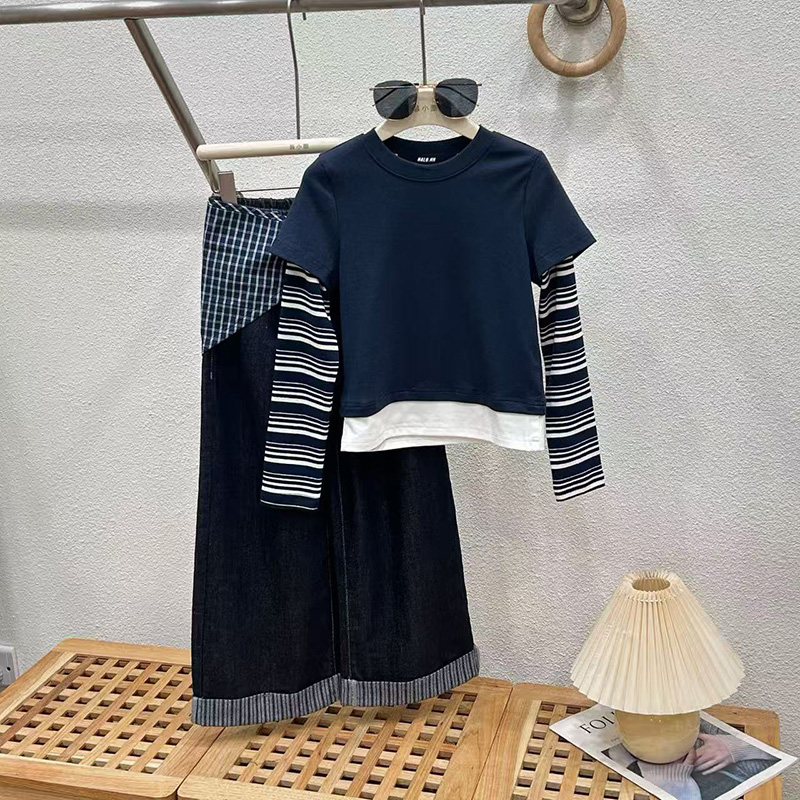 女童秋装牛仔裤套装2025新款儿童洋气春秋阔腿裤子女孩时髦两件套
