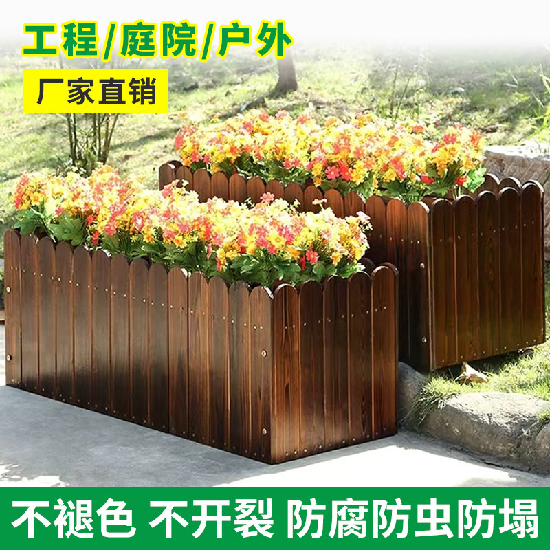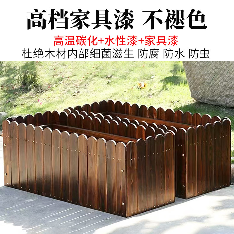 防腐木实木花箱长方形户外花盆庭院种菜盆碳化实木栅栏阳台种植箱