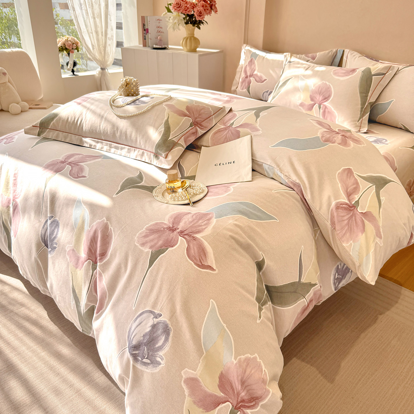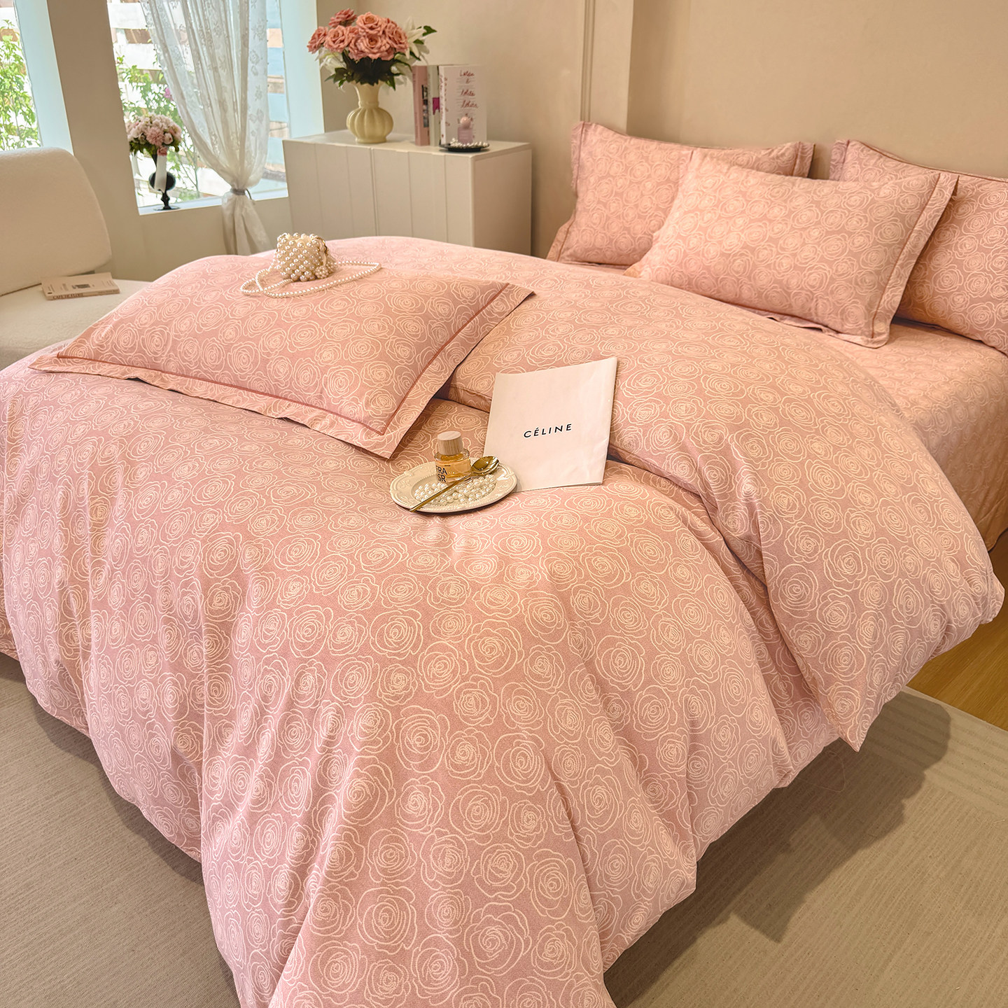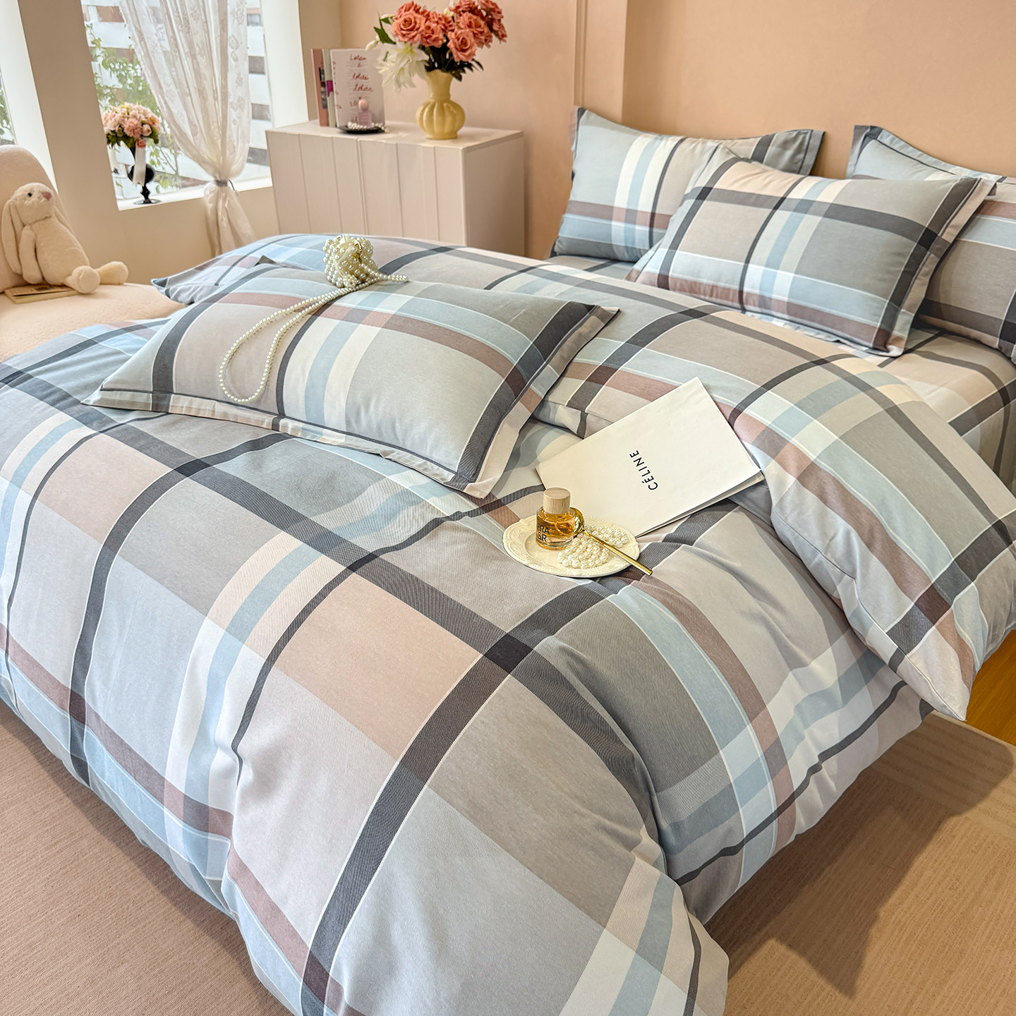 100%全棉磨毛四件套纯棉加厚款被套床单秋冬单双人床笠被罩三件套