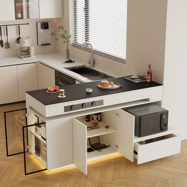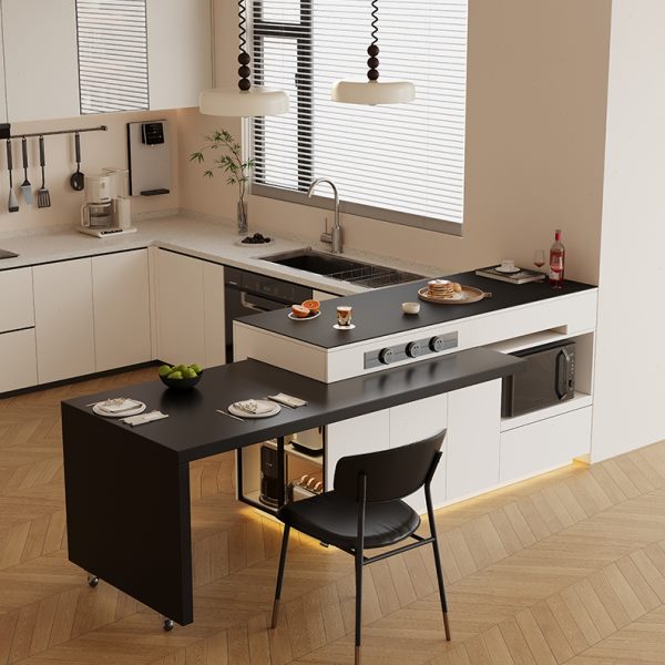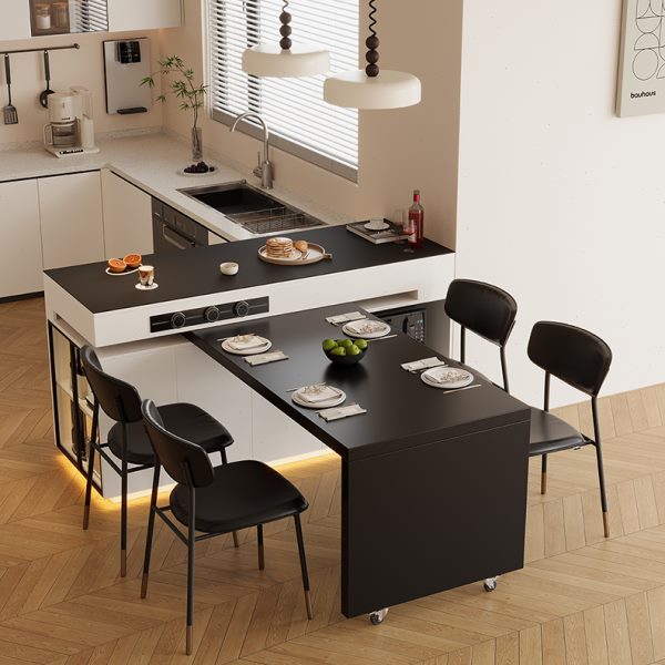 可伸缩岛台餐桌一体家用小户型2025新款轻奢现代简约多功能餐边柜