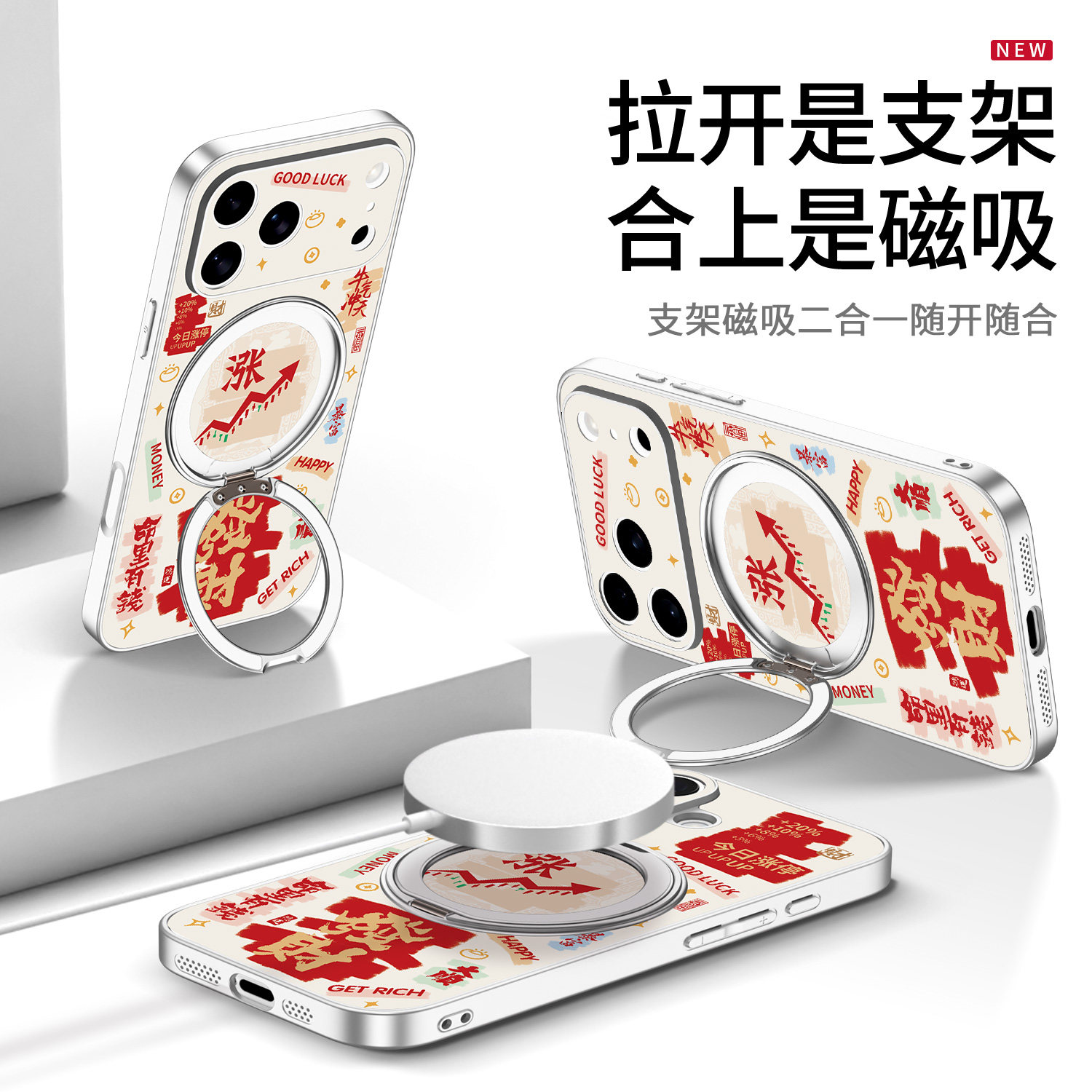 股票大涨发财好运ip17磁吸支架壳