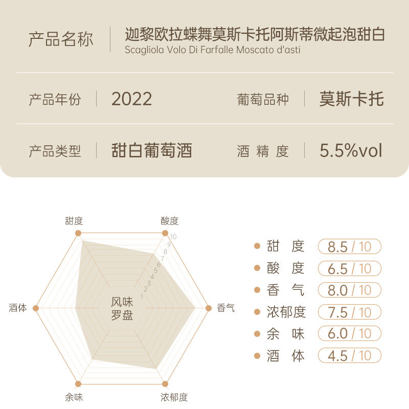 大红虾三杯名庄Asti 意大利蝶舞莫斯卡托阿斯蒂微起泡甜白葡萄酒