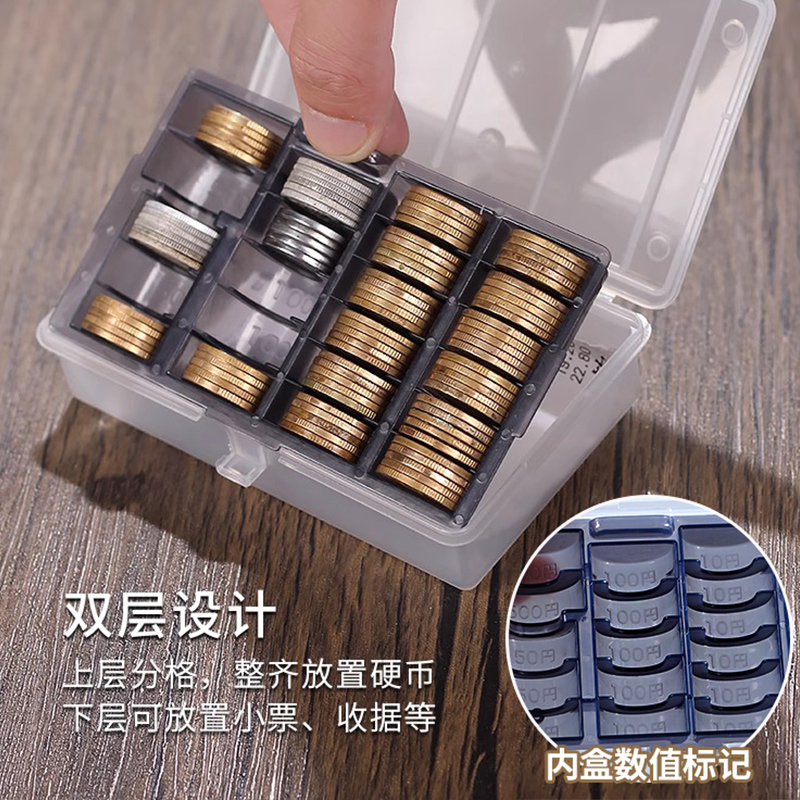 日本进口零钱盒收纳分隔零钱收纳盒硬币纸币钱币现金放钱收钱盒子