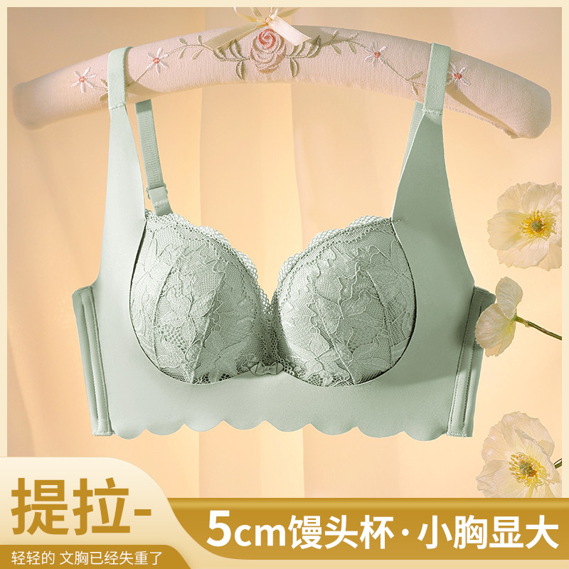 本命年红色加厚5cm内衣女小胸显大平胸专用提拉收副乳超厚文胸罩