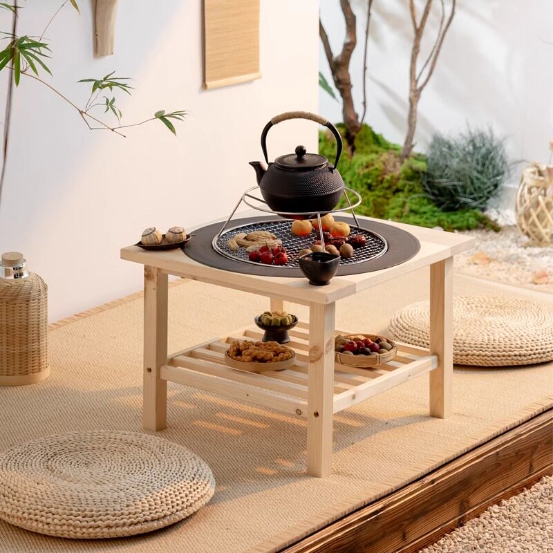 方形围炉煮茶实木烧烤炉套装