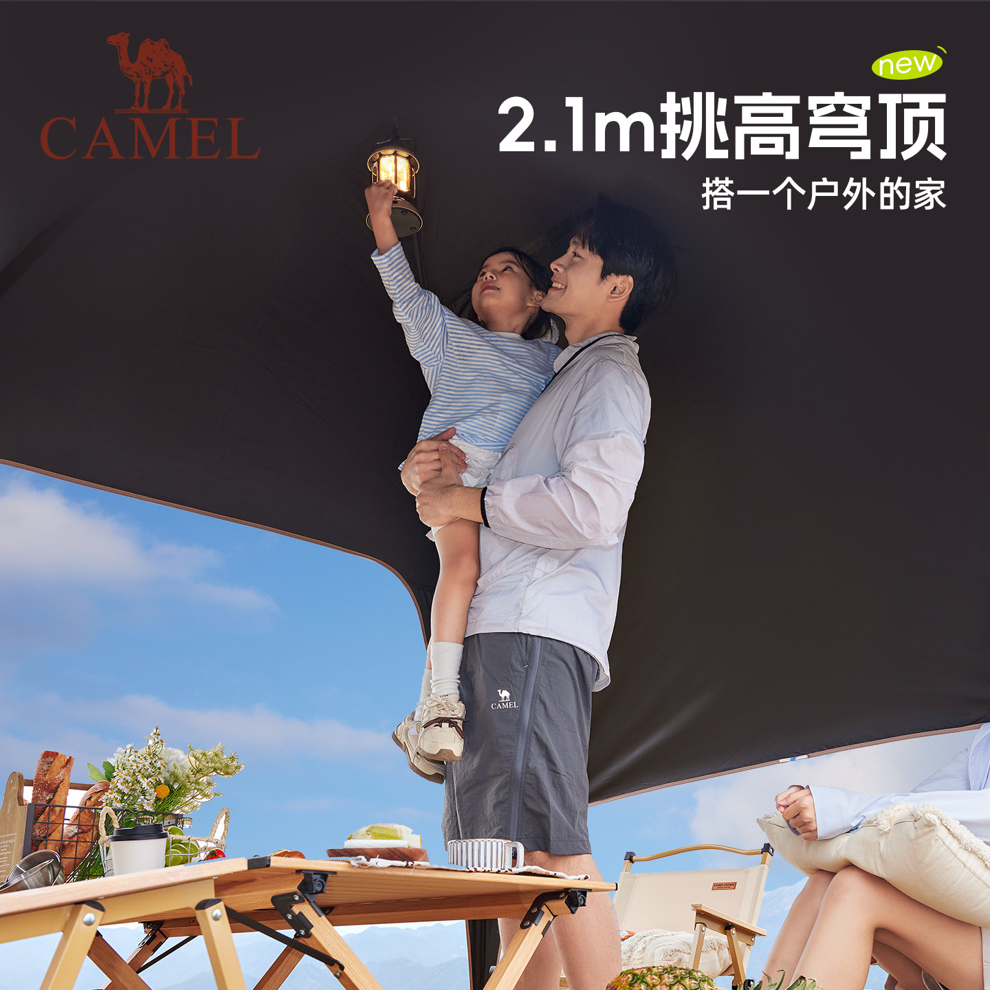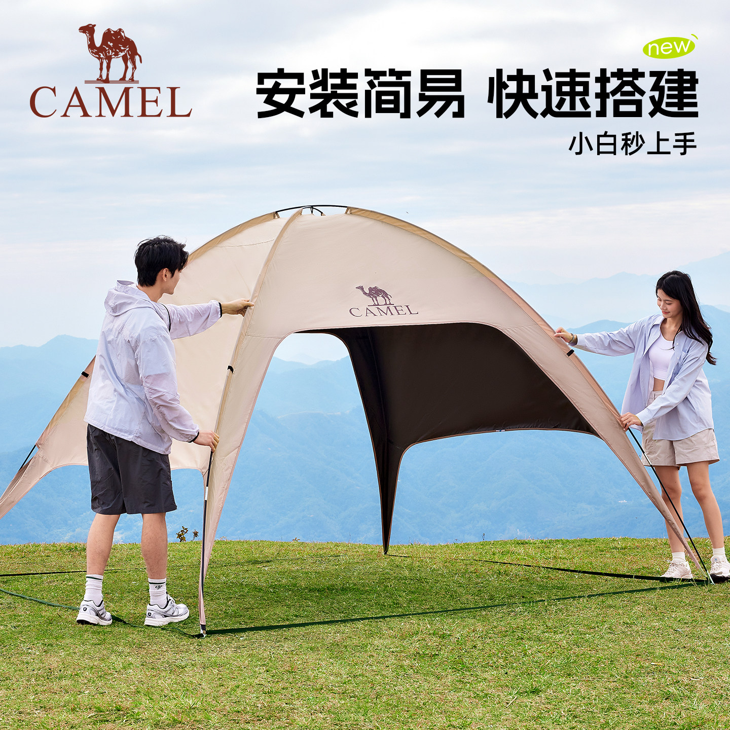 骆驼穹顶天幕帐篷户外露营一体遮阳棚黑胶简易速开伞布2026新款