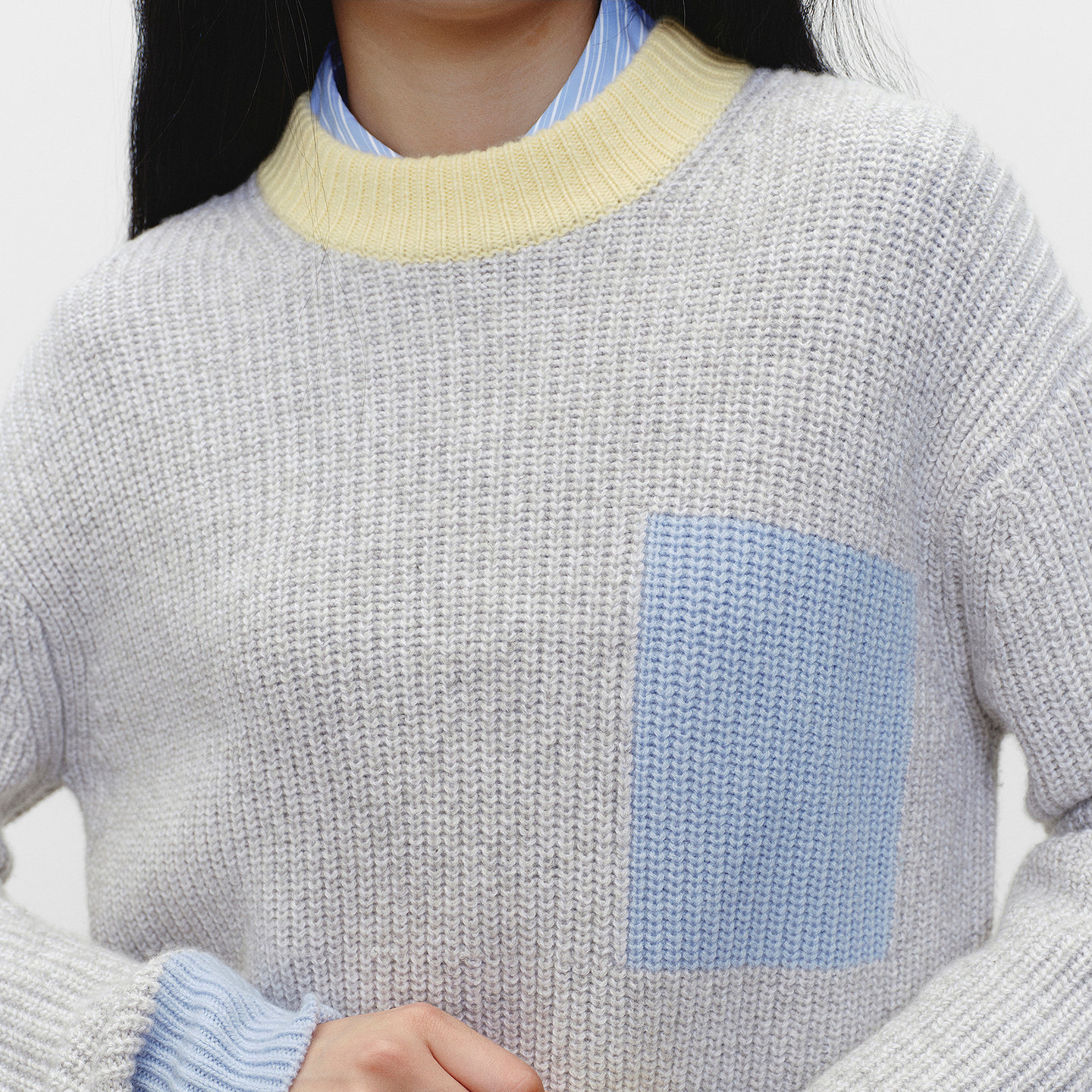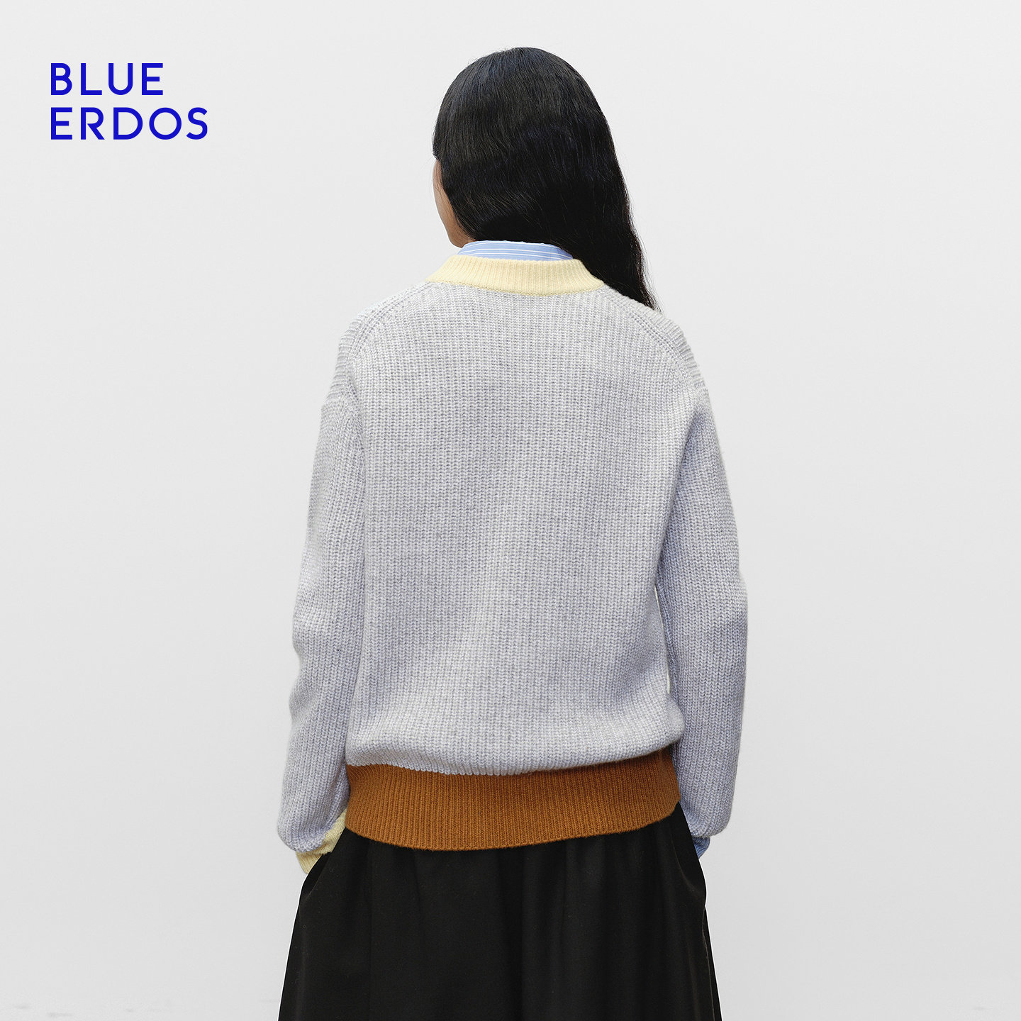 BLUE ERDOS冬季新品简约质感羊毛羊绒彩色撞色圆领女套衫针织衫