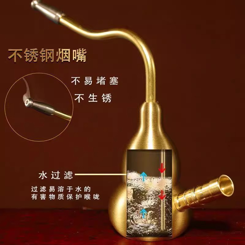 黄铜葫芦水烟壶两用型便携式水烟斗旱烟水烟袋烟嘴过滤器带水老式