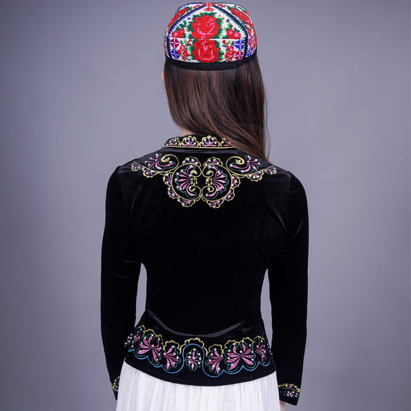 新疆舞蹈演出服维族服装金丝绒上衣女广场舞蹈民族服饰春秋季外套