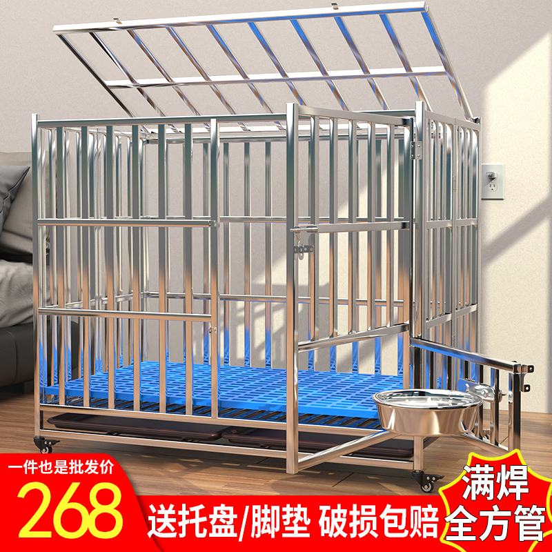 304不锈钢狗笼大型犬狗笼子中型室内折叠带小型厕所宠物金毛狗窝