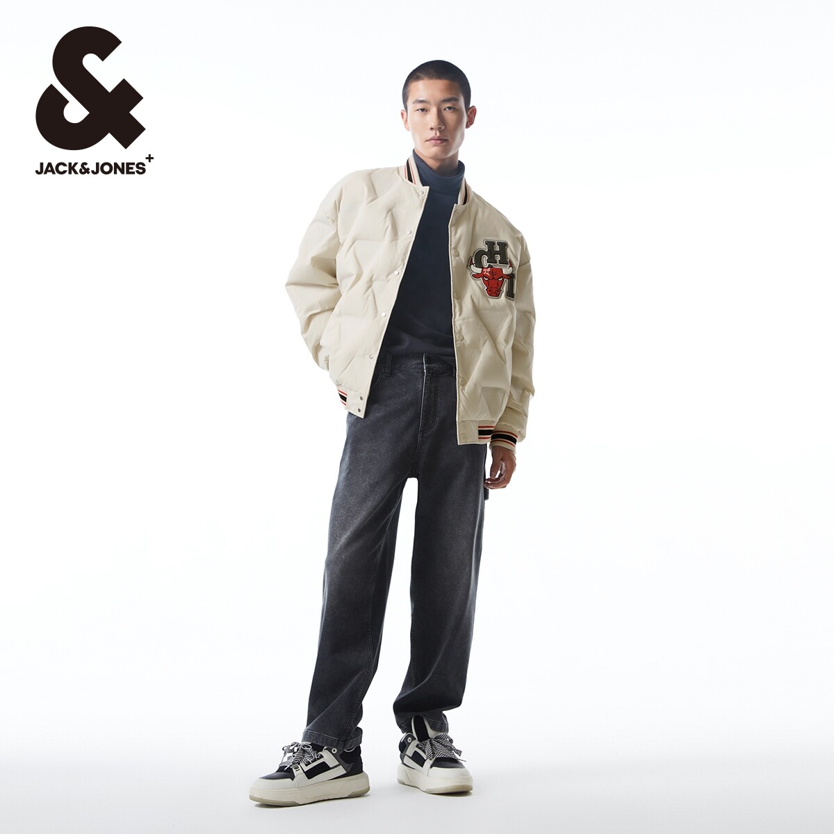 jq区绫致杰克琼斯春季NBA联名公牛队休闲棒球领宽松羽绒服夹克