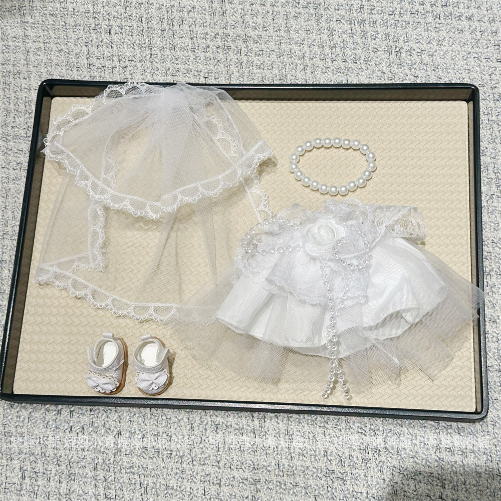 (仅娃衣)17cm拉布布labubu挂件公仔灰色西装白色婚纱裙子替换装