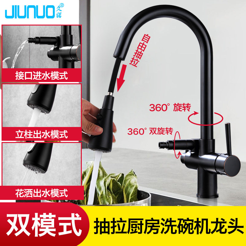独立开关黑色厨房接洗碗机冷热水龙头6分4分专用多功能洗衣机家用