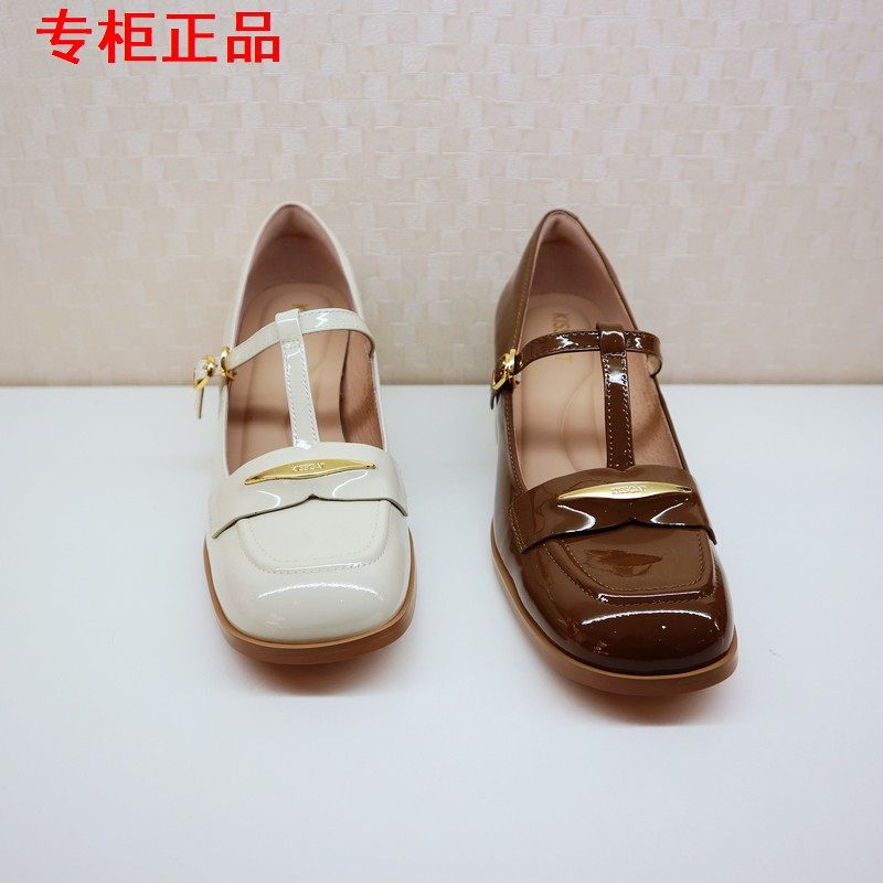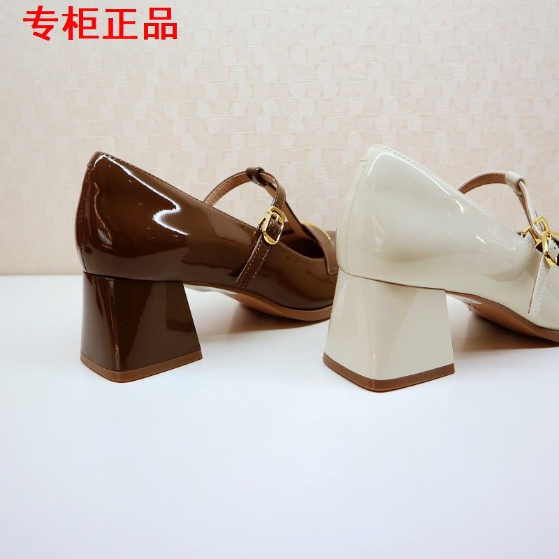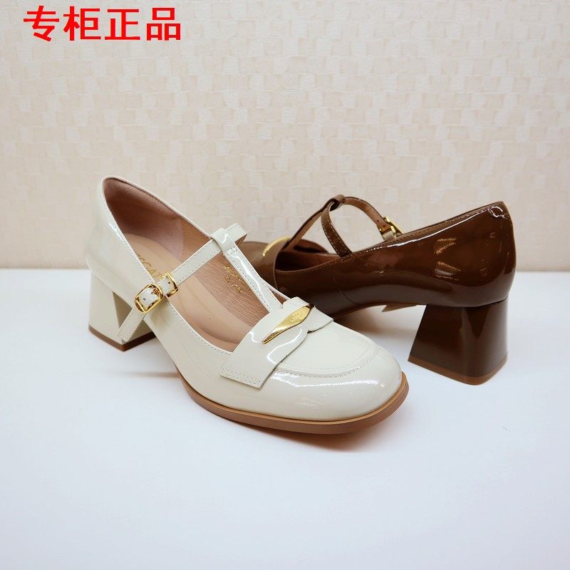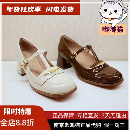 断码清仓KISSCAT接吻猫春通勤圆头T字带粗跟玛丽珍鞋女KA54100-12