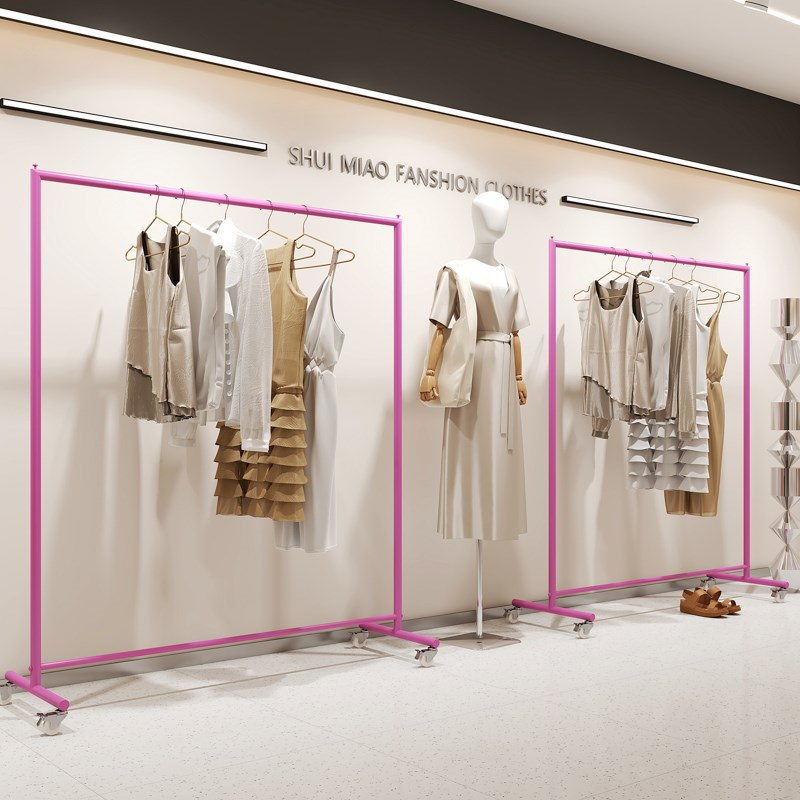 服装店展示架男女装店不锈钢落地式挂衣架中国红陈列侧挂货架