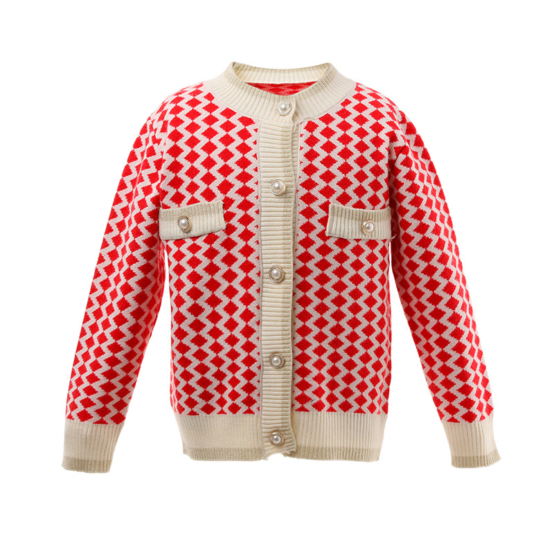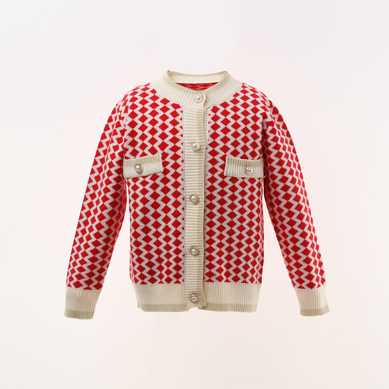 tutu裙上衣红色毛衣女童开衫针织纯棉格子打底衫春秋款圣诞节年服