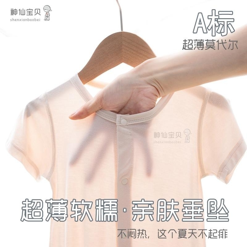 莫代尔婴儿连体衣半袖宝宝睡衣短袖哈衣夏季婴幼儿新生儿冰丝衣服