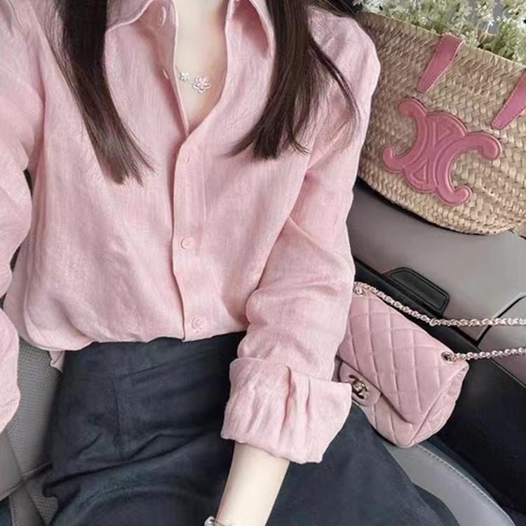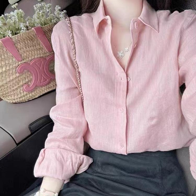 防晒衬衫女上衣2025新款超火高级感轻奢减龄洋气粉色亚麻长袖衬衣