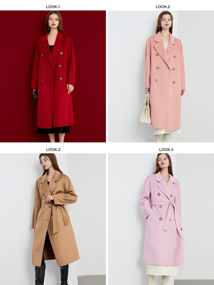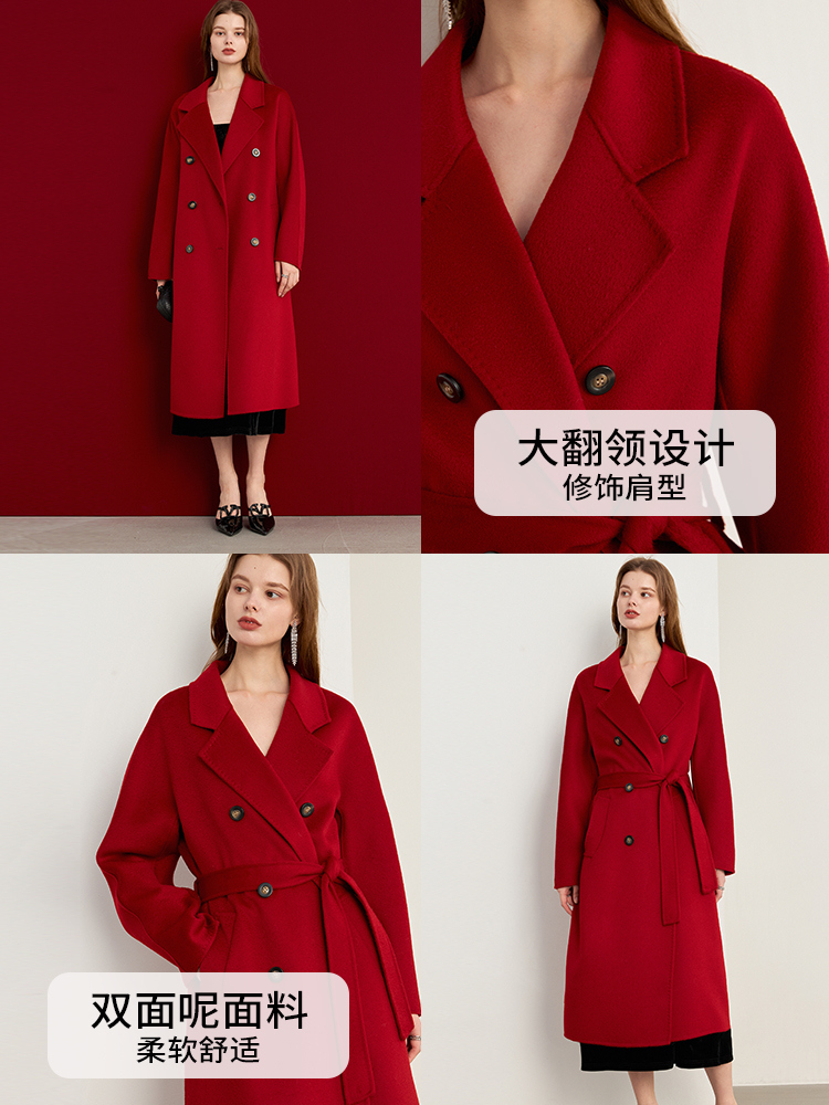 DPLAY冬季装复古红色中长款宽松双面毛呢大衣外套女